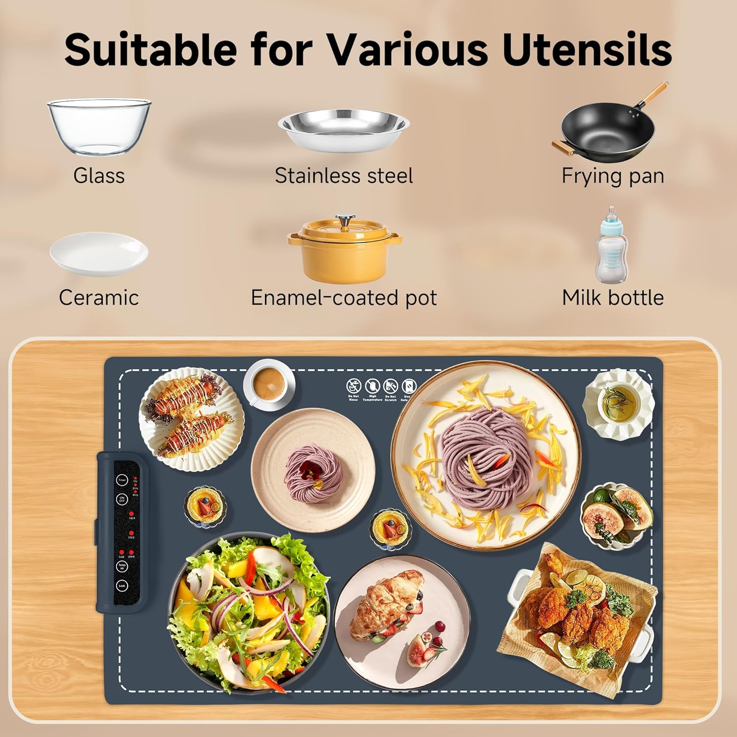 Food Warming Mat- Foldable Warming Mat for Food with Adjustable Temperature Control Time Moders Locking Function Electric Warming Tray for Parties,Home,Travel,Buffet Dark Blue
