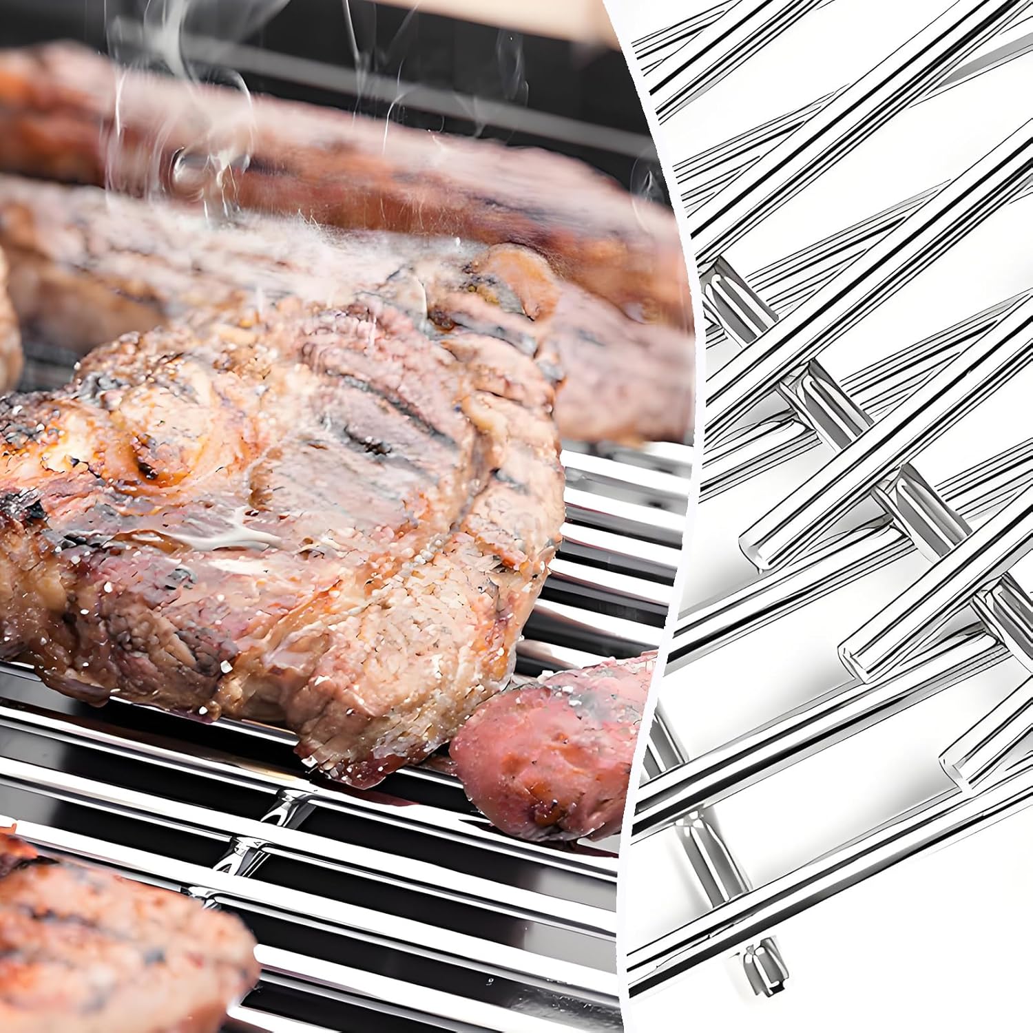- Made of heavy-duty and long-lasting SUS food-grade stainless steel, Non-magnetic, corrosion resistant, and heat resistant. Thickness is 7MM, more thicker than other 5MM Grates; Weighs 13.7 pounds, heavier than the original Weber which weighs only 10.26 pounds.