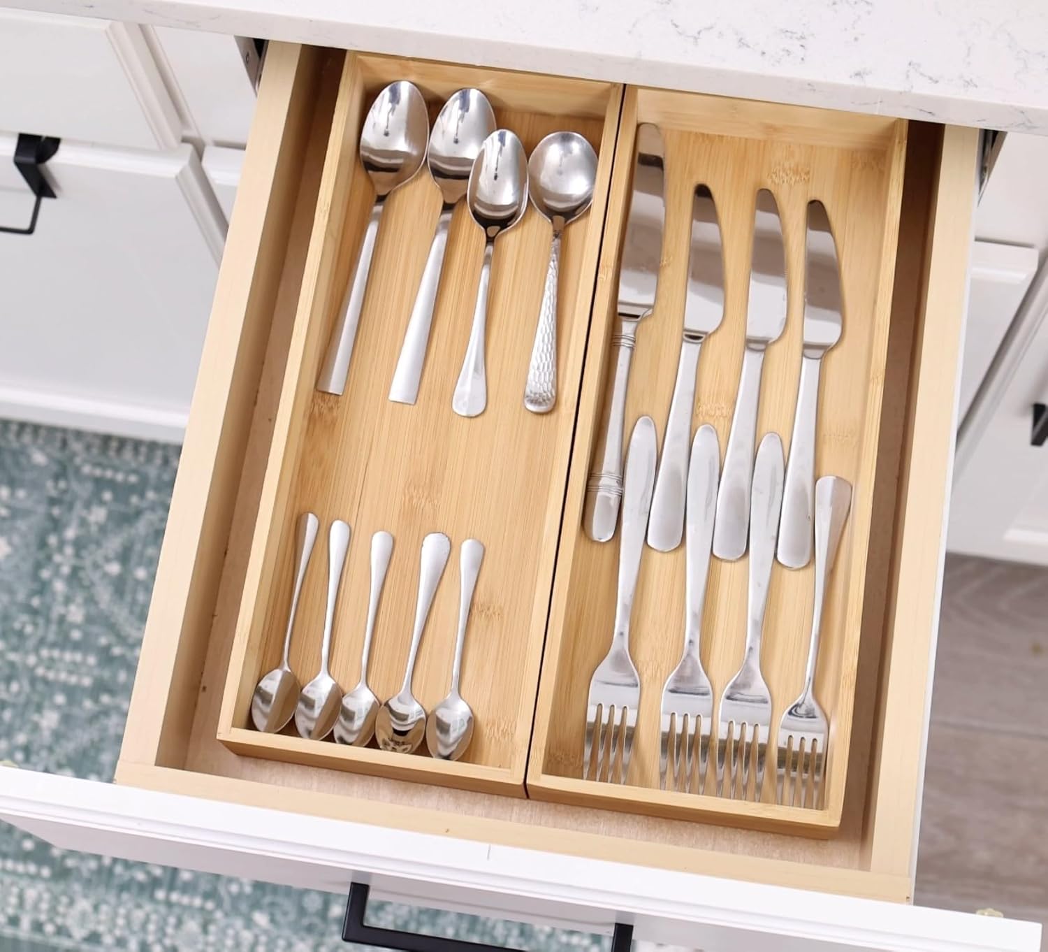 - BRING YOU ORGANIZATION & PEACE: Put Fabsome bamboo boxes in a kitchen drawer to organize utensils, in a bathroom drawer to store makeup, and in a flatware drawer for your cutlery. They are also perfect for your nightstand with all your bedside "needs". Drawers have never been so organized.