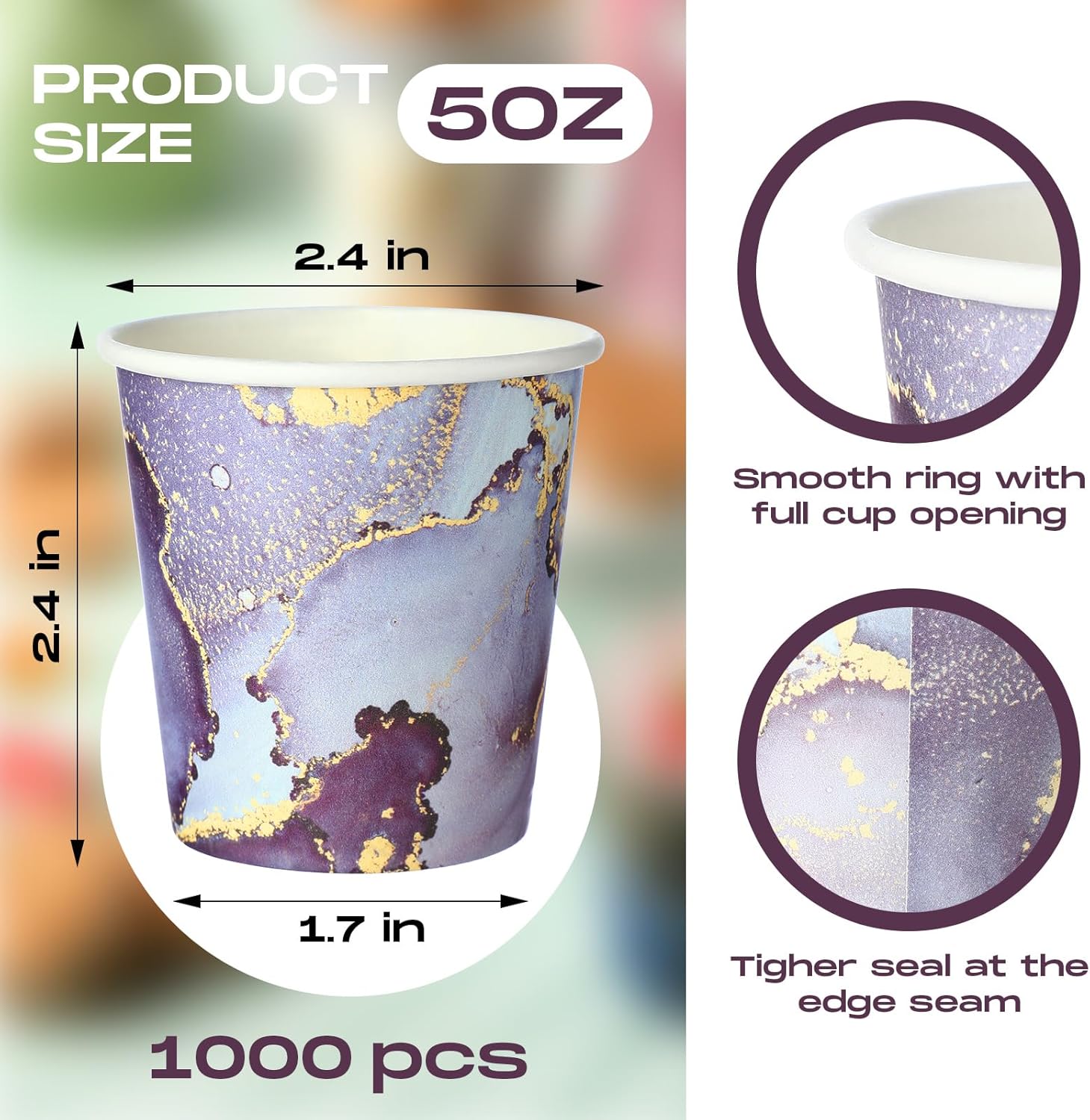 Thenshop 1000 Pack 5oz Paper Cups, Multicolor Disposable Marble Water Cups Bulk, Mini Mouthwash, Hot/Cold Beverage Drinking for Parties, Picnic, Travel, Barbecues and Event, 10 Colors