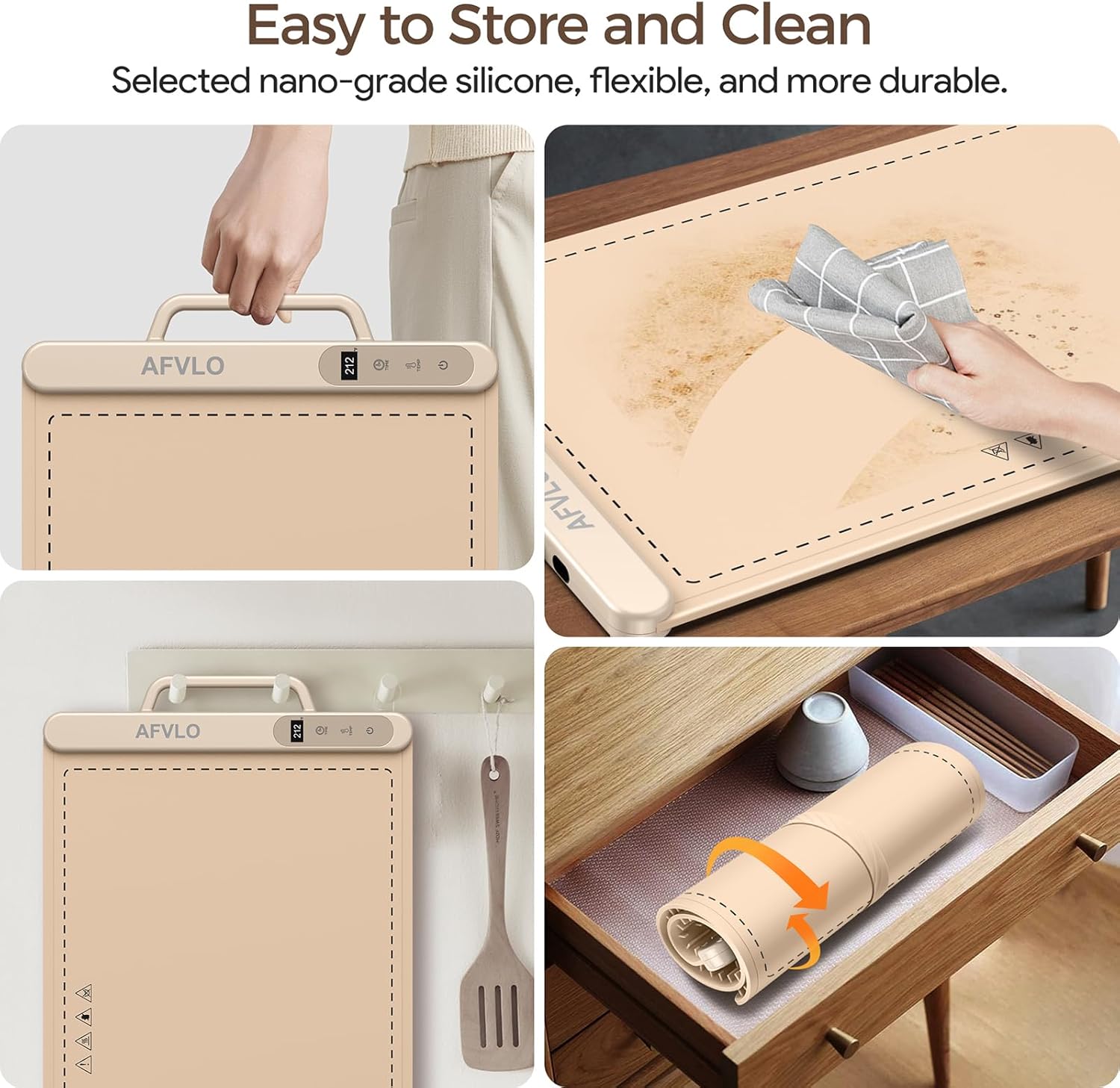 - š šØš„šššš„š & šš©ššš-šššÆš¢š§š : Warming tray features a graphene heating film, known for its rapid heat conduction, long lifespan, flexibility, and enhanced safety. This makes it suitable for various high-temperature utensils, ensuring more even and efficient heat distribution. Furthermore, this roll-up thermal pad boasts a portable design, allowing for easy rolling and space-saving storage when not in use.