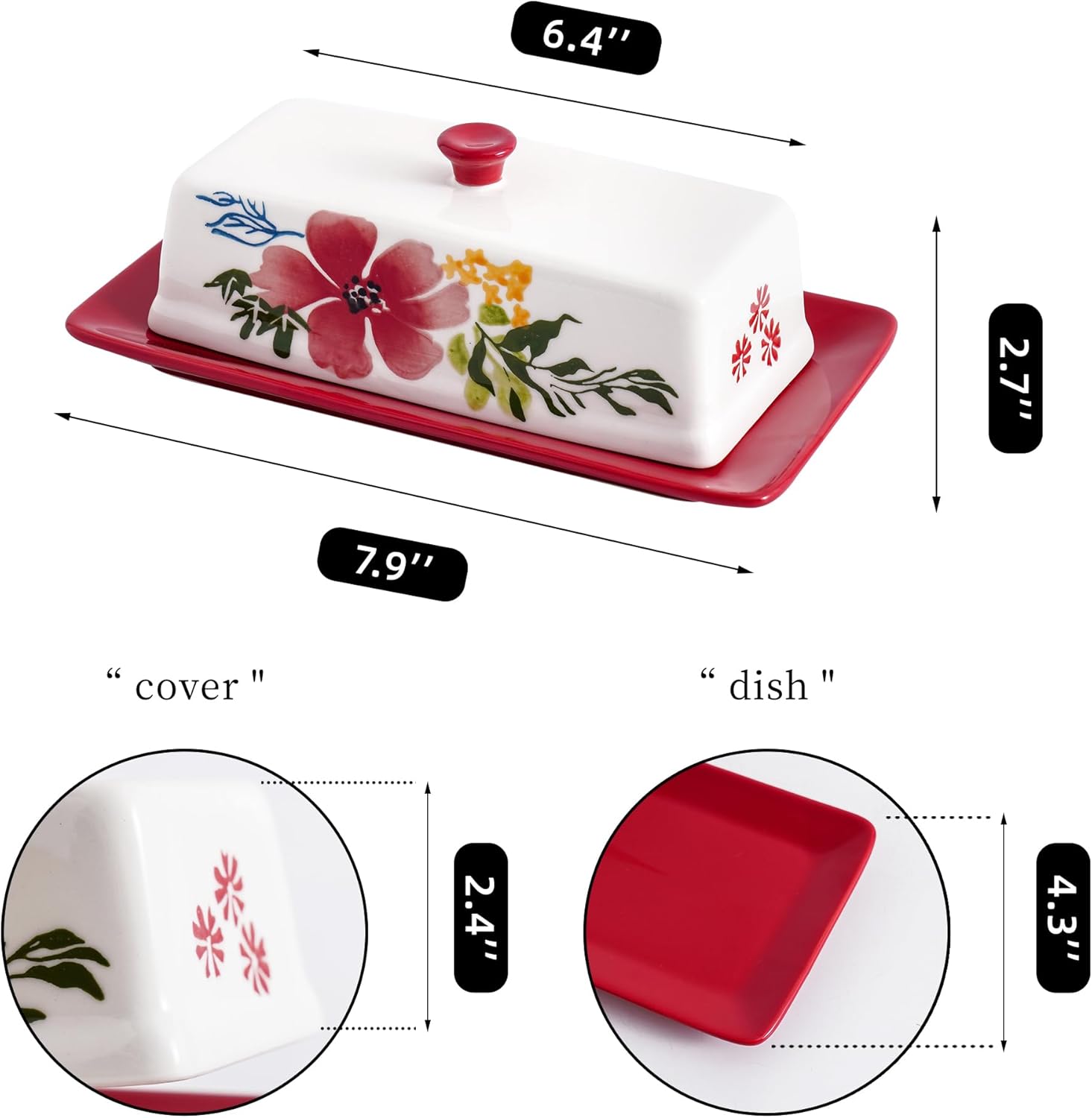 - 【BEAUTIFUL PATTERN】This ceramic butter dish is hand-painted, pretty color and floral make the patterns look more vivid.