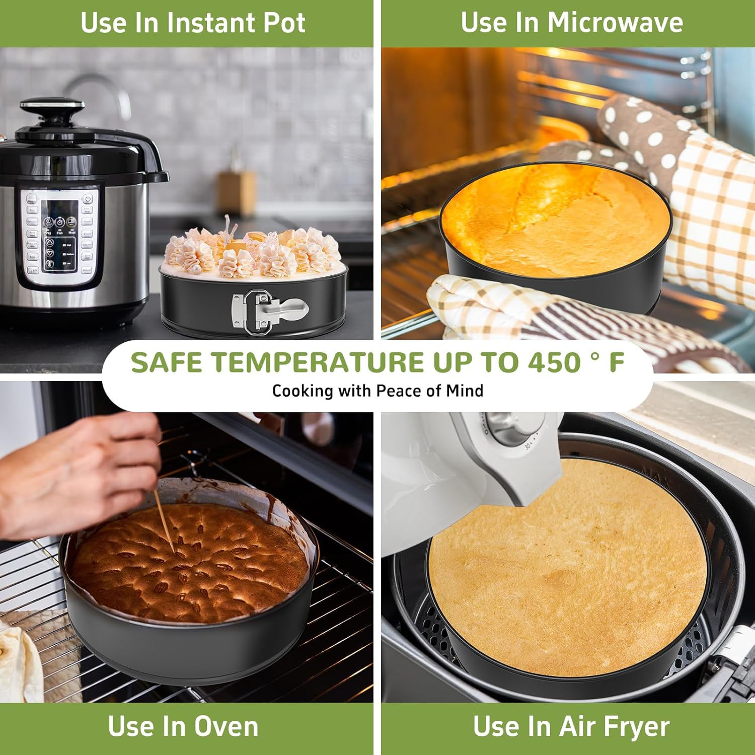 - Easy to Clean: The premium non-stick coating can reduce the absorption of grease in the pan while making cleaning a breeze. To protect the non-stick coating, hand wash only is recommended when cleaning the round spring form cake pans