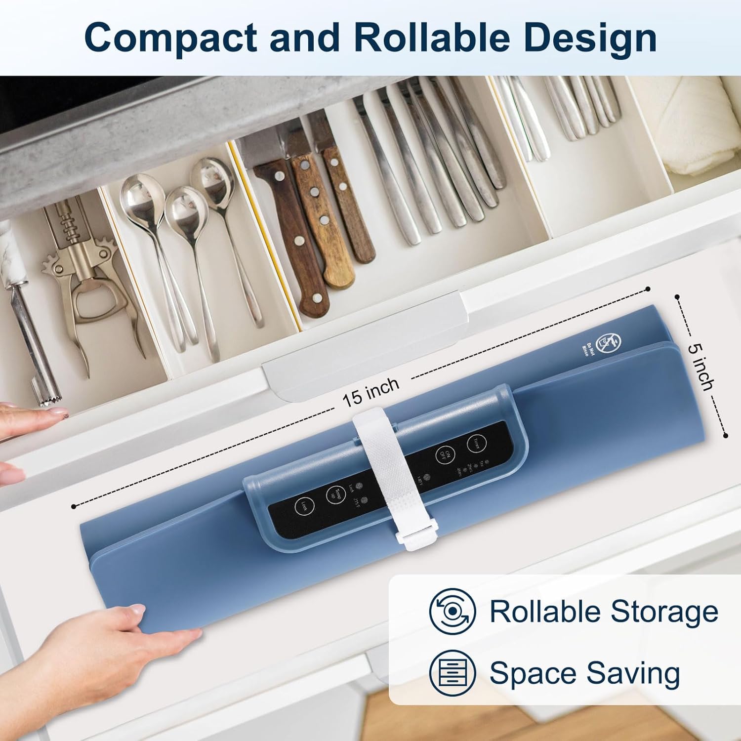 - [Nano-Silicone Easy Clean]: Our electric warming mat for food features premium nano-silicone material, splash, stain, and oil-resistant. Wipe it easily with a damp cloth or paper towel for spotless cleaning. Food-grade and safe for worry-free usage