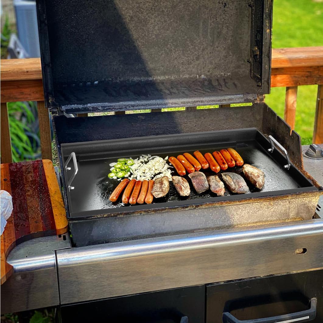 - 【Convenient Handles and Gloves】The coming with handles and gloves are handy for moving the griddle. The griddle insert measures 21.7 x 15 inches. Our full-size griddle insert, made of high-quality materials, is nonstick, more durable and heats up faster than other griddles.