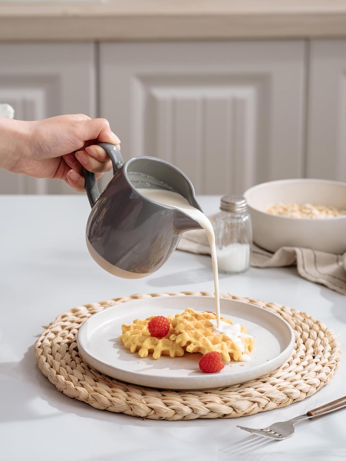 - DISHWASHER & MICROWAVE & Fridge SAFE: This 13-ounce pitcher is dishwasher and microwave-safe for easy cleaning and reheating. Itβs also fridge-safe, making it perfect for storing milk, cream, or maple syrup at cool temperatures. Crafted for durability, they ensure consistent quality with every use