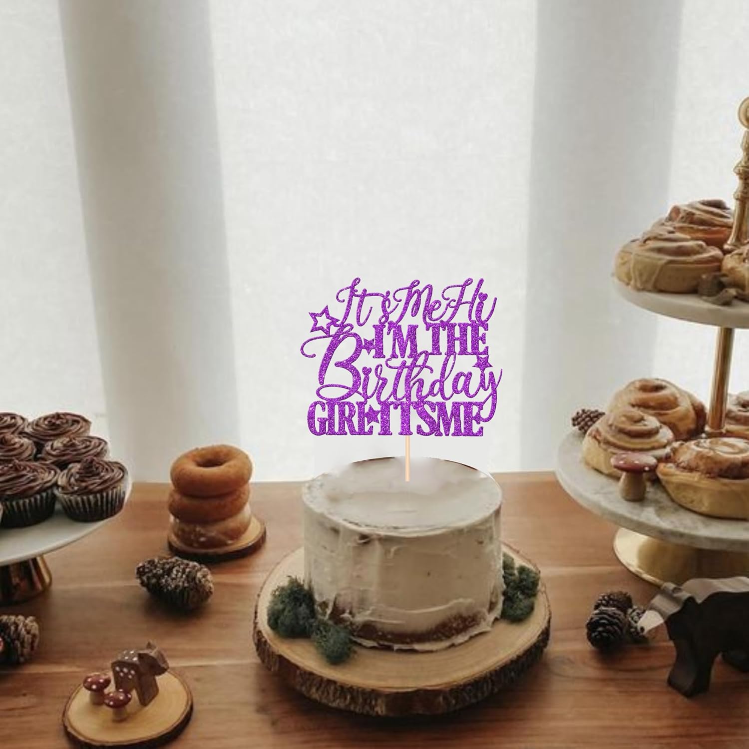 1 PCS It's Me Hi I'm the Birthday Girl It's Me Cake Topper Glitter Music Singer Cake Pick for Funny Hip Hop Singer Girls Birthday Party Cake Decorations Supplies Purple