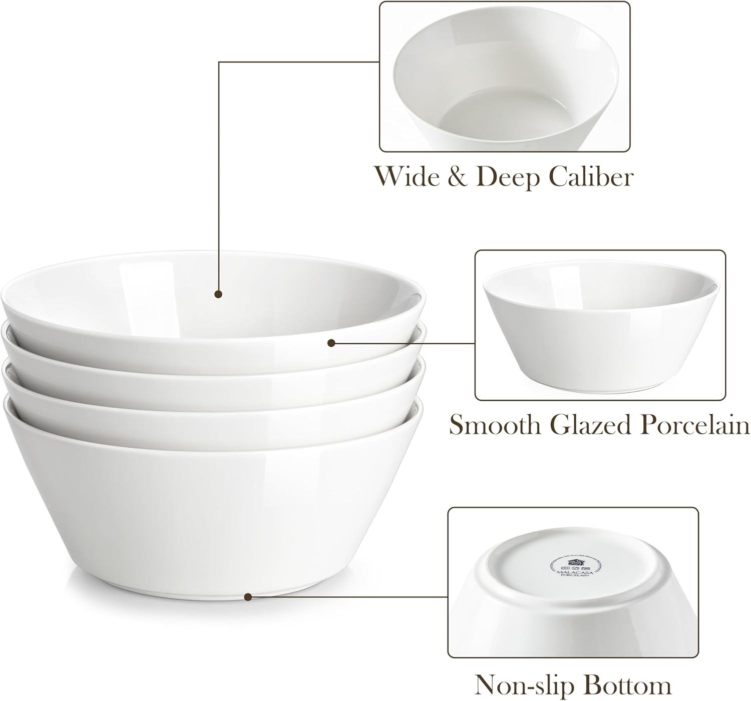 MALACASA 35 OZ Soup Bowls, White Porcelain Bowls Set of 4, Deep Bowls for Kitchen, Large Ceramic Bowls for Soup, Cereal, Salad, Ramen and Fruit, Dishwasher & Microwave Safe, Series Regular