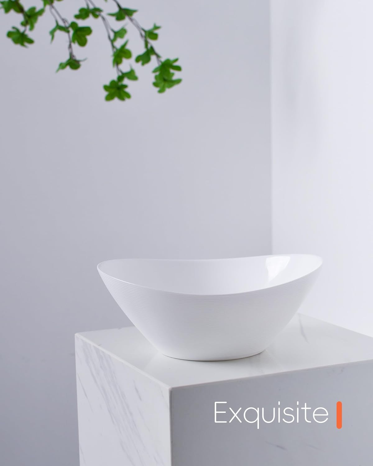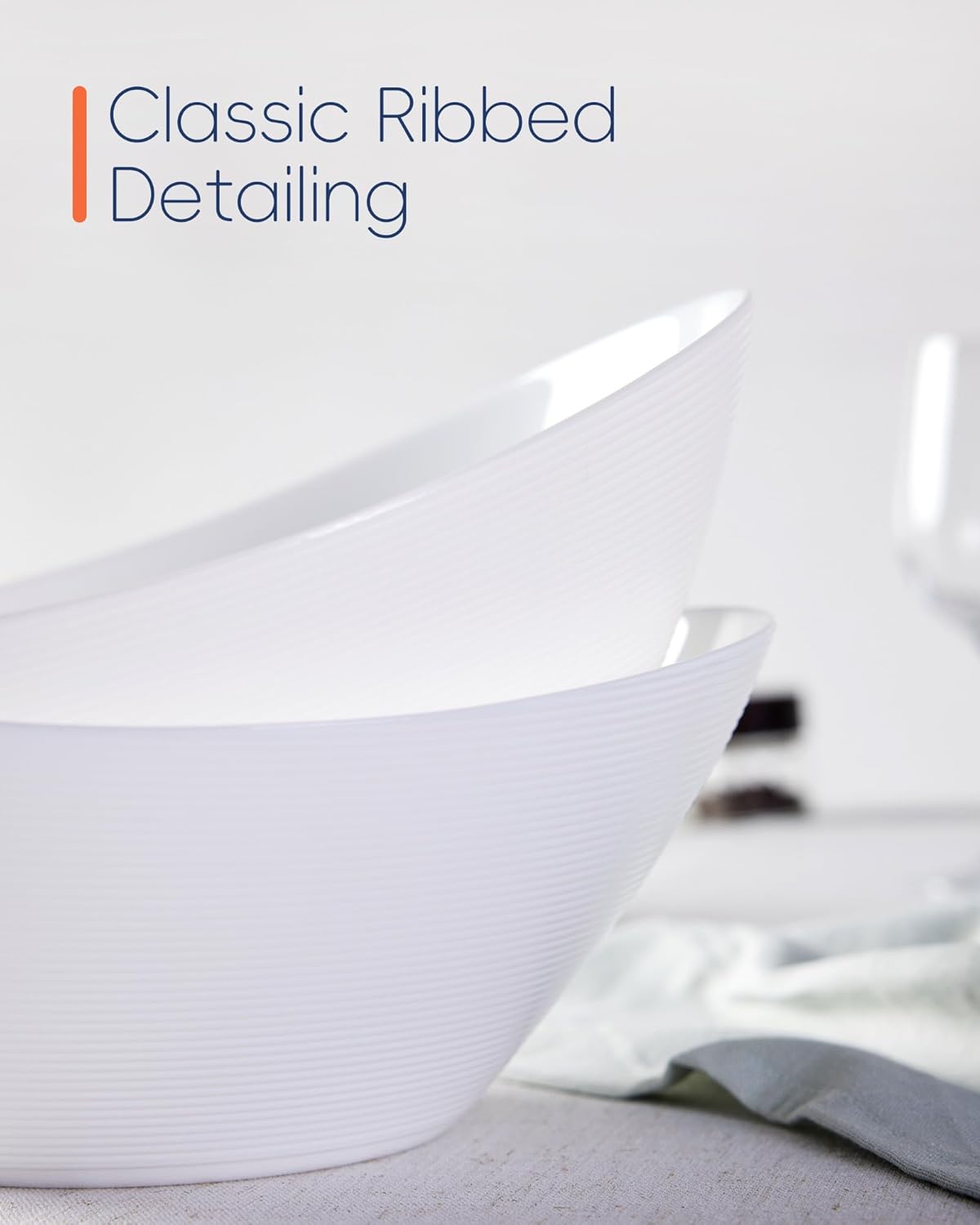 66 OZ Salad Bowl Set of 2, Opal Glass 10 inch Lightweight Serving Dishes for Salad, Fruit, Kitchen Microwave & Dishwasher Safe, Oval Shape White