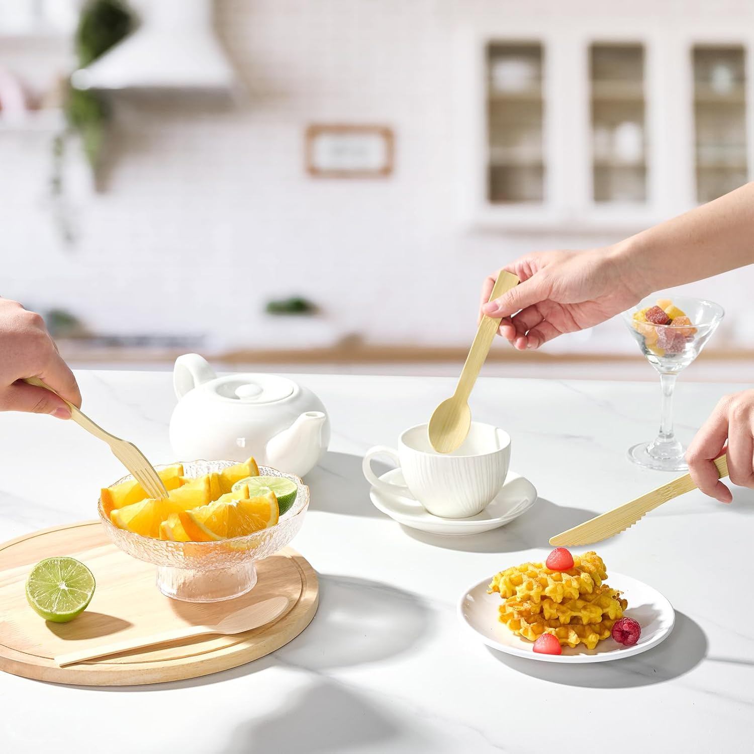 ECOLipak 300 Count Bamboo Cutlery Set, 100 Knives, Forks and Spoons each, No Splinters Disposable Cutlery Set Compostable Utensils for Party, Camping, Traveling, Family Dinners