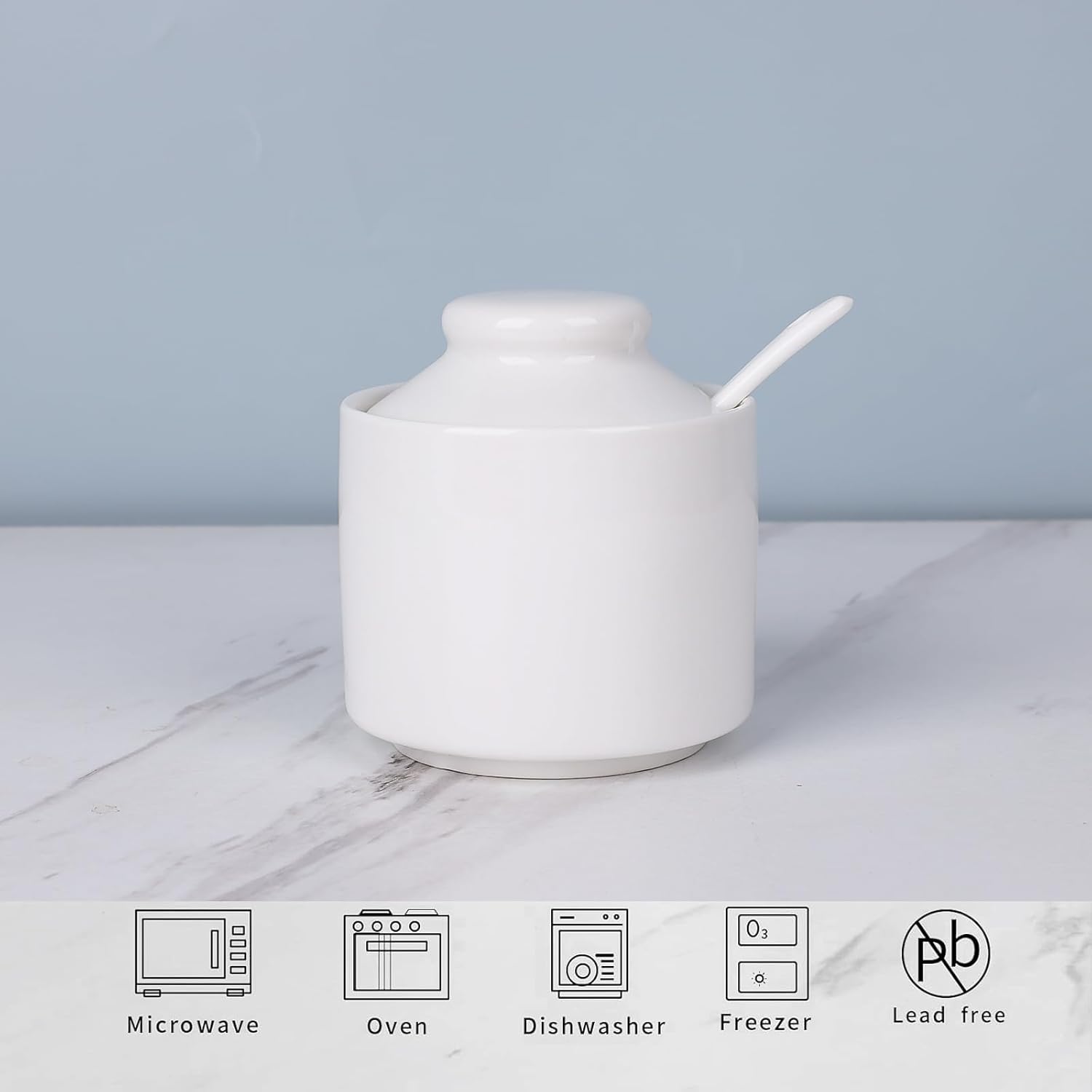- DESIGN CONCEPT: This sugar bowl is equipped with a lid and a small spoon. The lid can keep your ingredients away from dust. There is a perfect notch on the lid for placing the spoon, so you donβt have to worry about placing the spoon randomly