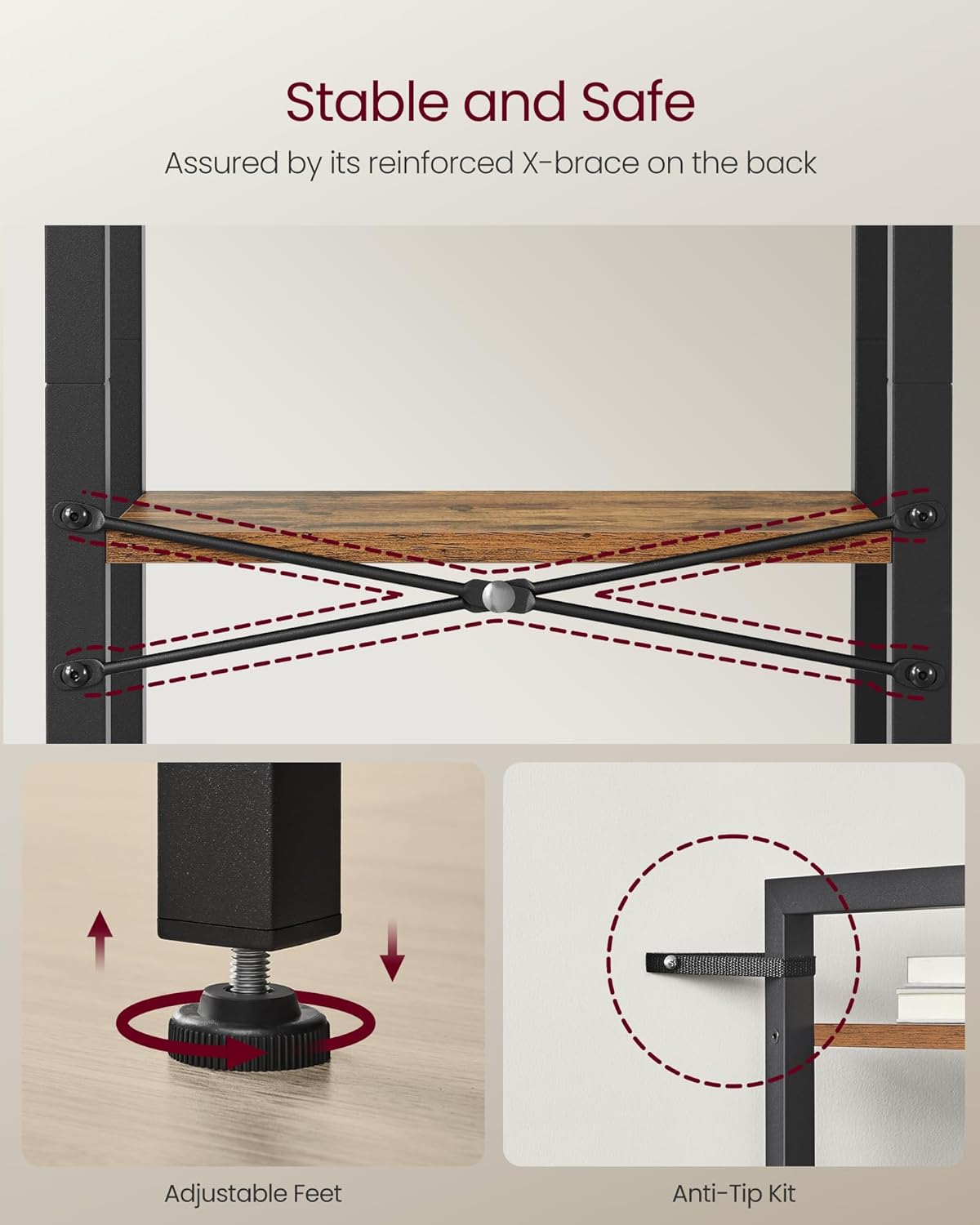 - Stable and Safe: X-brace reinforces the structure, adjustable feet keep this tall book shelf balanced on slightly uneven floors, and the included anti-tip kit will help you fix it to the wall for greater stability and safety