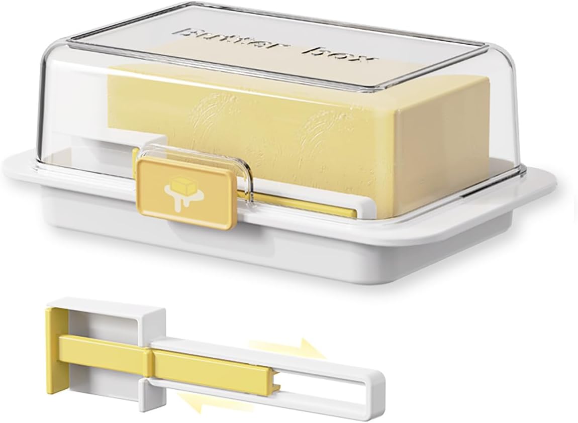 - STYLISH DESIGN: Featuring a sleek and modern aesthetic, this butter dish complements any kitchen decor. Its transparent lid allows you to easily see the contents while adding a touch of elegance to your countertop or dining table. This butter dish is not just for butter, it perfect for including salted, unsalted, and flavored varieties, also store spreads, cheeses, or other similar items, enhancing its utility.