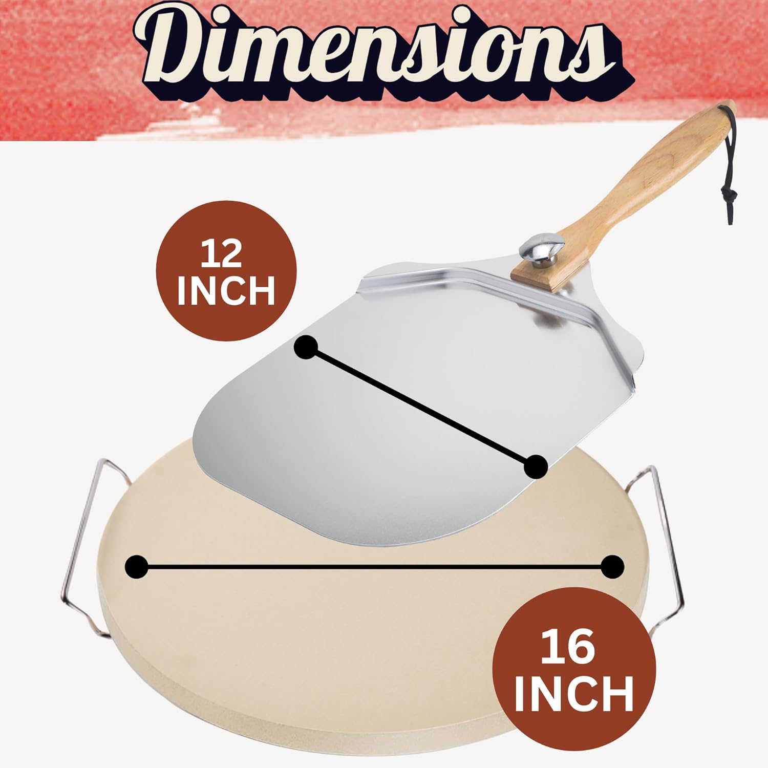 Round Pizza Stone for Oven 16 inch - Large Pizza Stone for Grill with Handles, Metal Pizza Peel & Dough Tool - Baking Stone for Bread - Oven Stones - Pizza Making Set