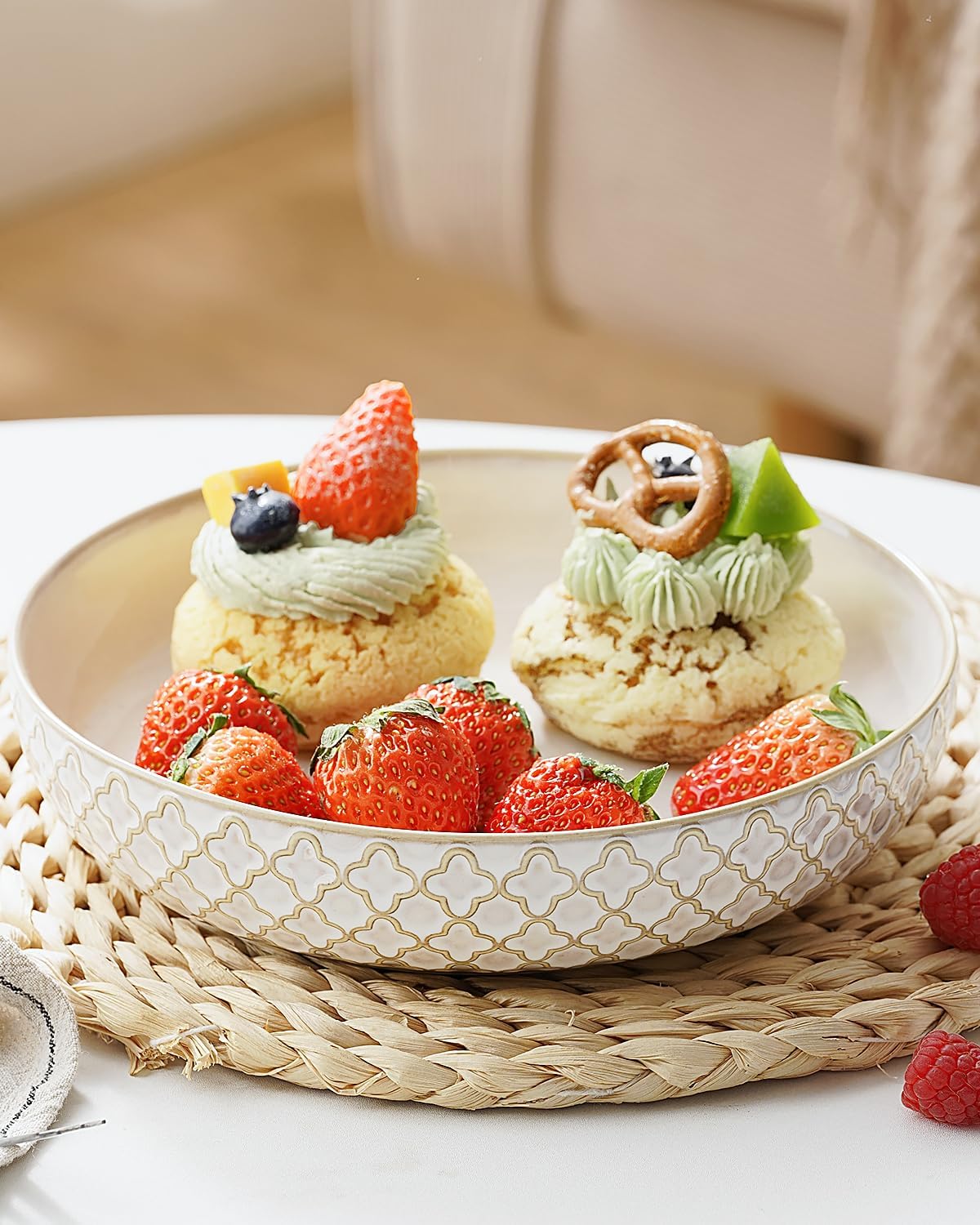 getstar Pasta Bowls, Large Salad Serving Bowls (8.2 inch/35 oz), Ceramic Bowl Plates Set of 4, Farmhouse Embossments, Microwave and Dishwasher Safe