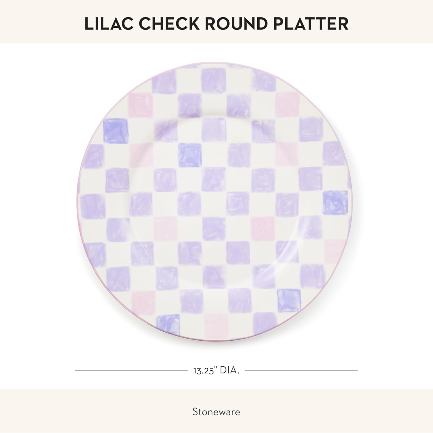 MACKENZIE-CHILDS Round Platter, Dishwasher-Safe and Microwave-Safe Stoneware Serving Platter, Lilac Check