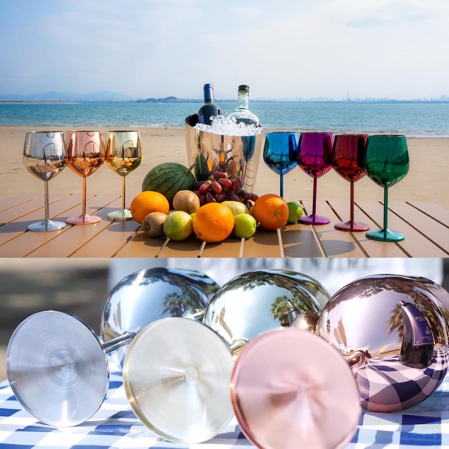 - Premium Unbreakable Stainless Steel Wine Glasses – Crafted from food-grade 304 stainless steel, BPA-free, these shatterproof wine glasses offer the elegant look of glass with unmatched durability. Perfect for travel, camping, boats, or everyday use, they're lightweight yet sturdy, ensuring a safe and worry-free drinking experience