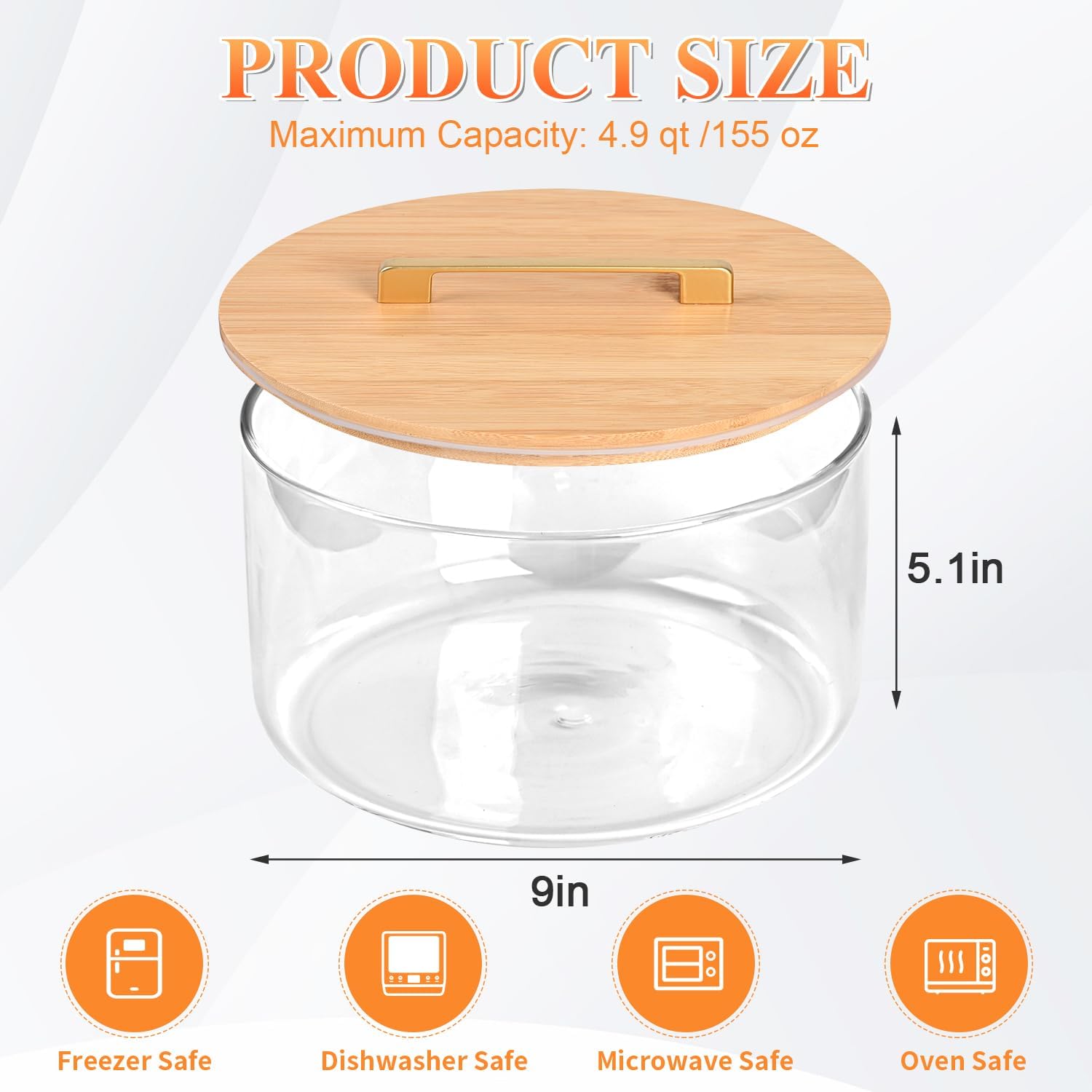 9 inch Large Salad and Trifle Bowl Glass with Lid, 155 oz Versatile Mixing and Serving Dish for Fruit, Laying Ice Cream, Cake, Cupcake, Baking, and Dessert, Microwave Safe