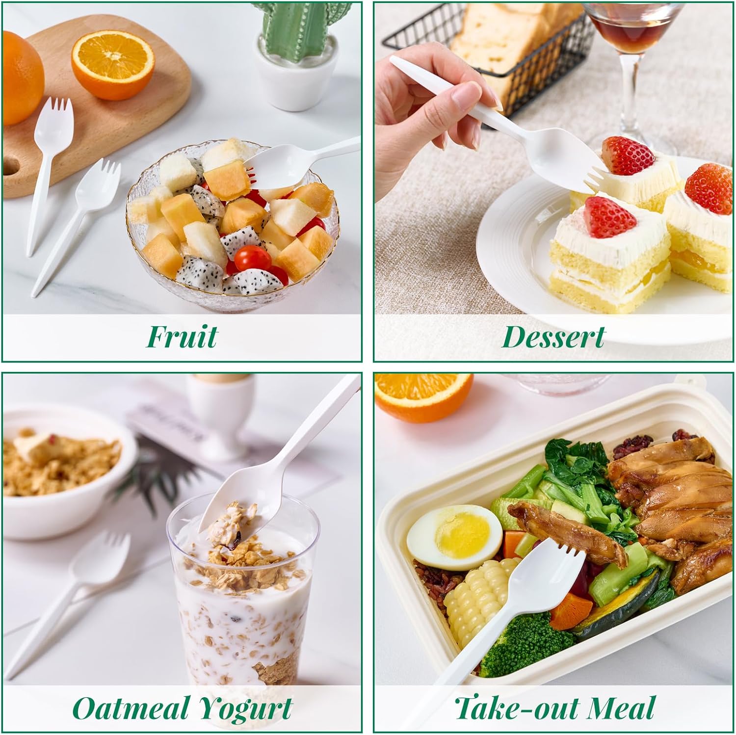 - Clean and Crisp White: Neutral white sporks bulk blend seamlessly with any table setting, enhancing the visual appeal for casual or formal dining.