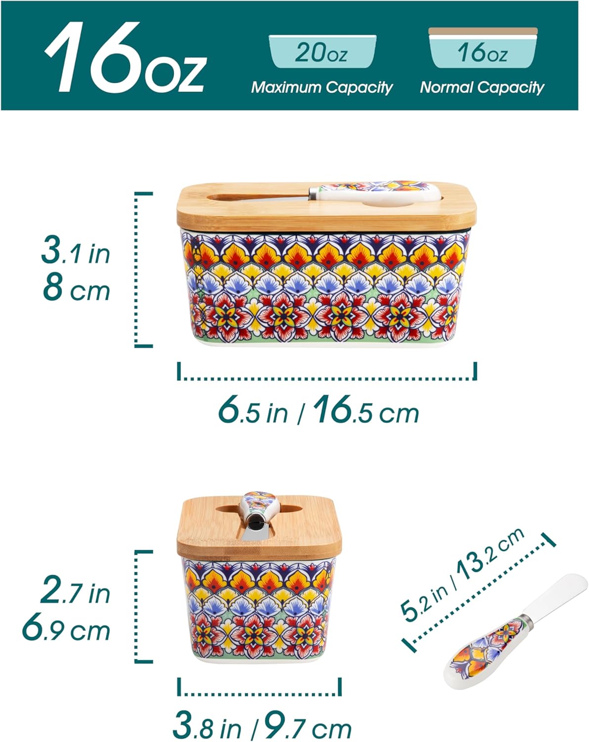 - 【Vibrant and Colorful Designs】vancasso bohemian style Butter Dish with Lid boast enchanting and intricate designs that capture the free-spirited essence of Bohemian culture. The lively colors and artistic patterns evoke a sense of joy and positivity, enhancing your dining experience with a burst of energy and happiness.