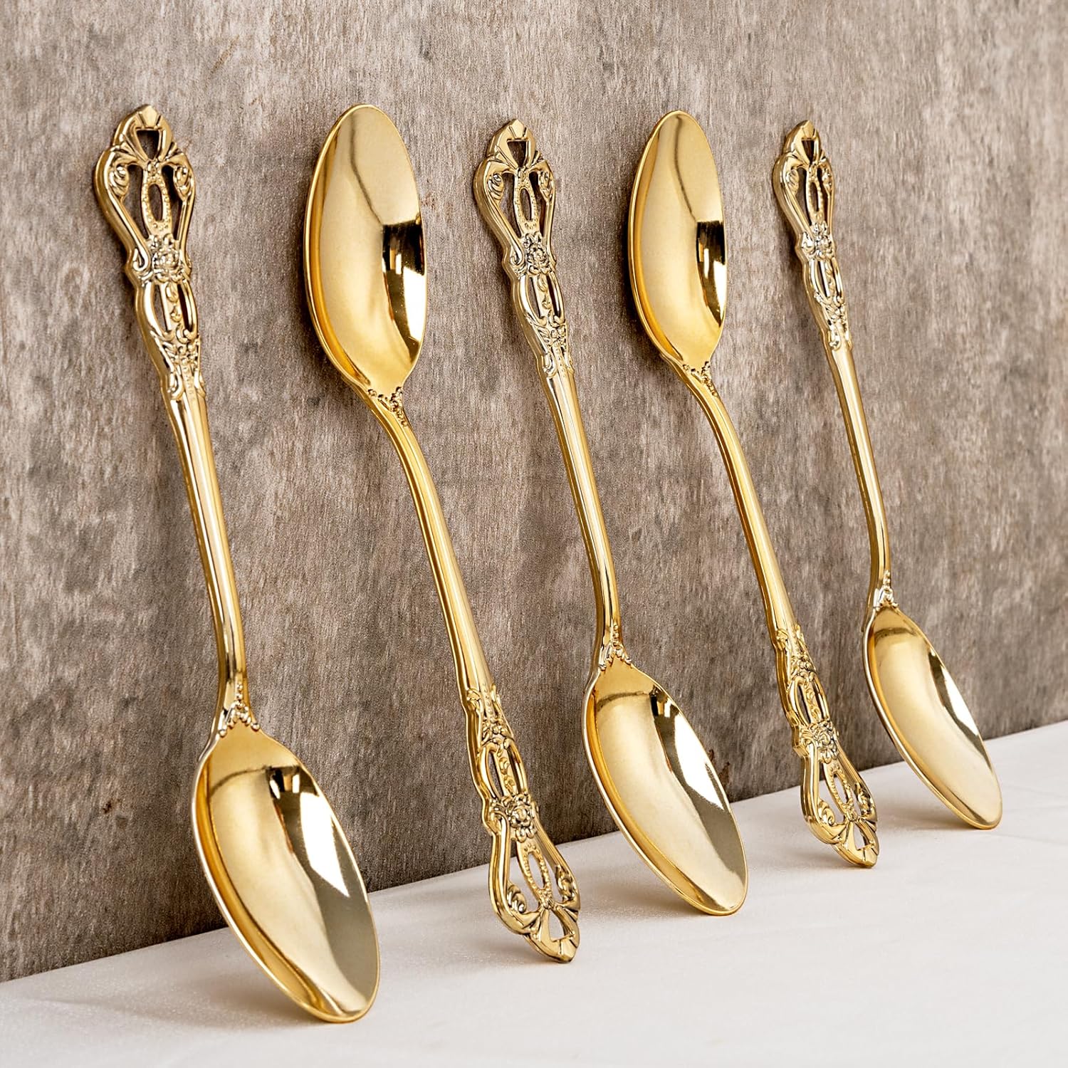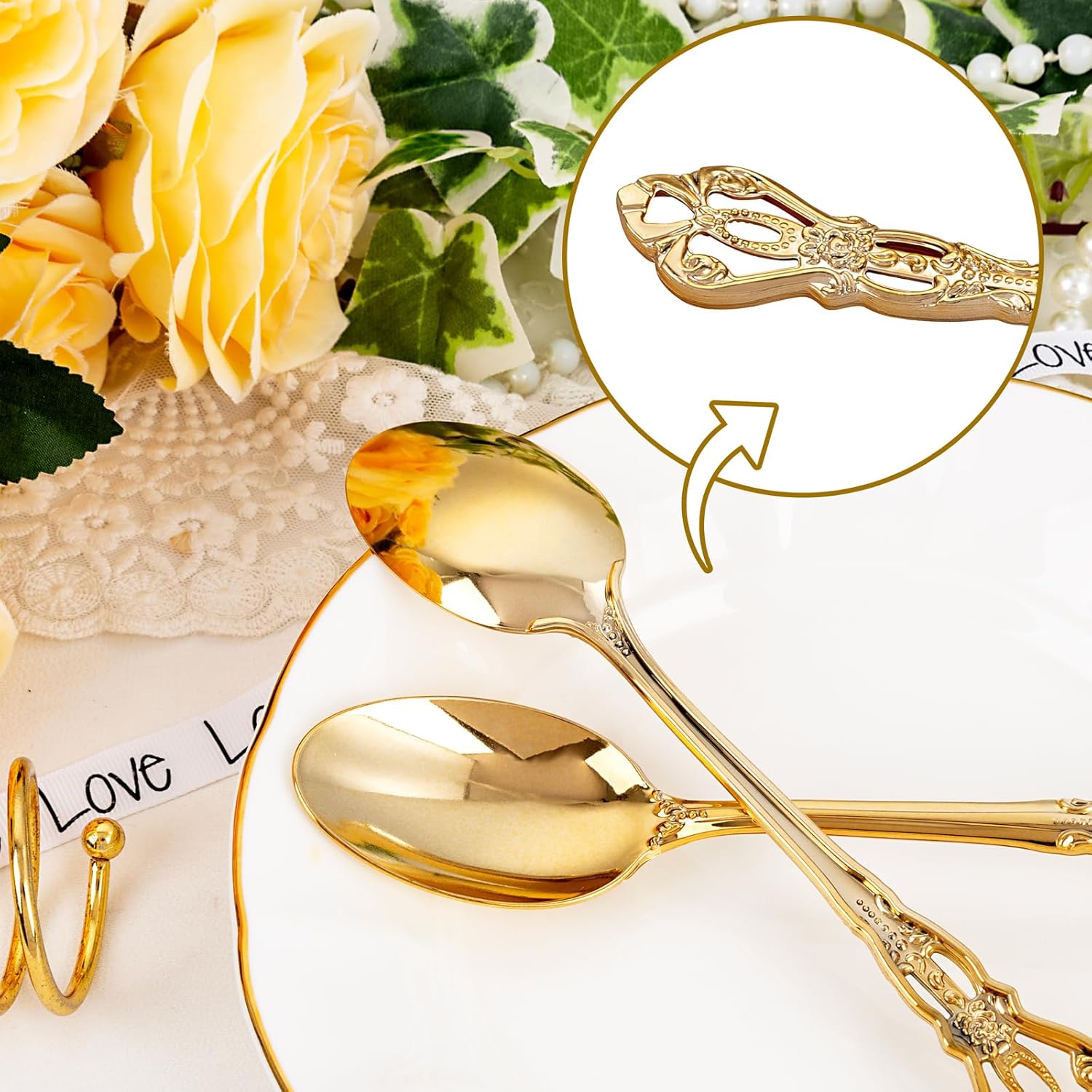 - Elegant Design: The vintage gold plastic spoons are adapt to the hollow design make these gold spoons disposable perfect for elevating any table setting, from weddings to themed parties. It includes 30 gold plastic spoons disposable, ensuring you have enough for every guest.