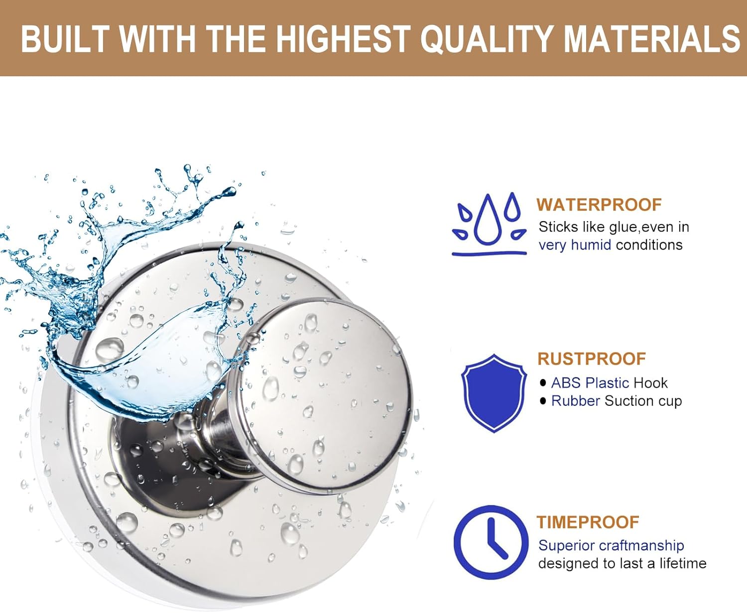 - UNIQUE UPGRADED SUCTION CUP HOOK - ZESLMG suction cups made of BPA-free ABS plastic,the thickened adhesive vacuum suction cup base and the 3M adhesive double-layer anti drop technology ensure a super sturdy suction, can holds up to 22lbs max. The anti-rust, waterproof and oil resistant premium stainless steel finish will never let you down.