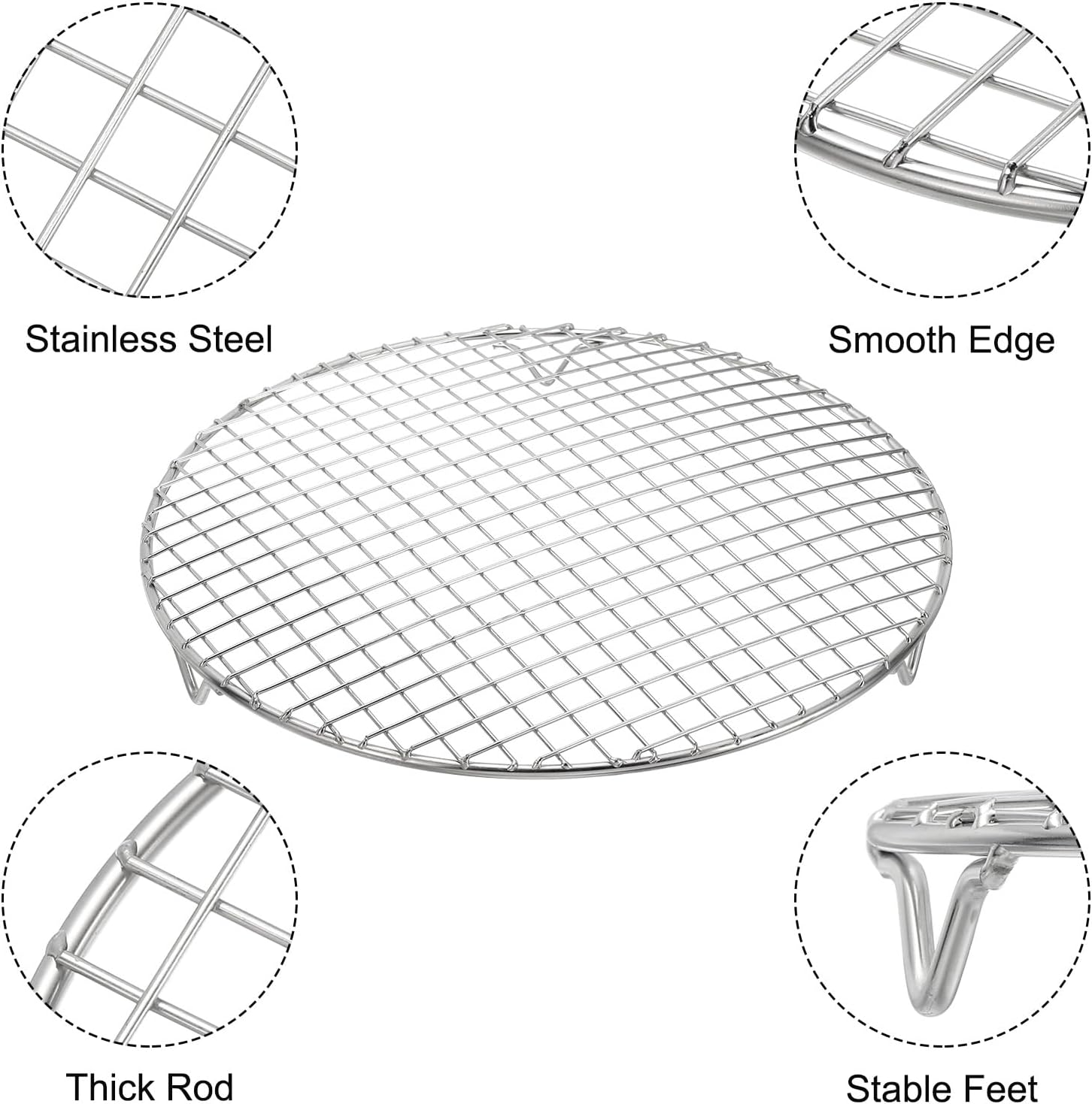 uxcell 2 Pcs Round Cooking Rack with Legs, Dia 11 Inch 304 Stainless Steel Barbecue Grill for Cooking Baking Barbecue Air Fryer Racks, Silver