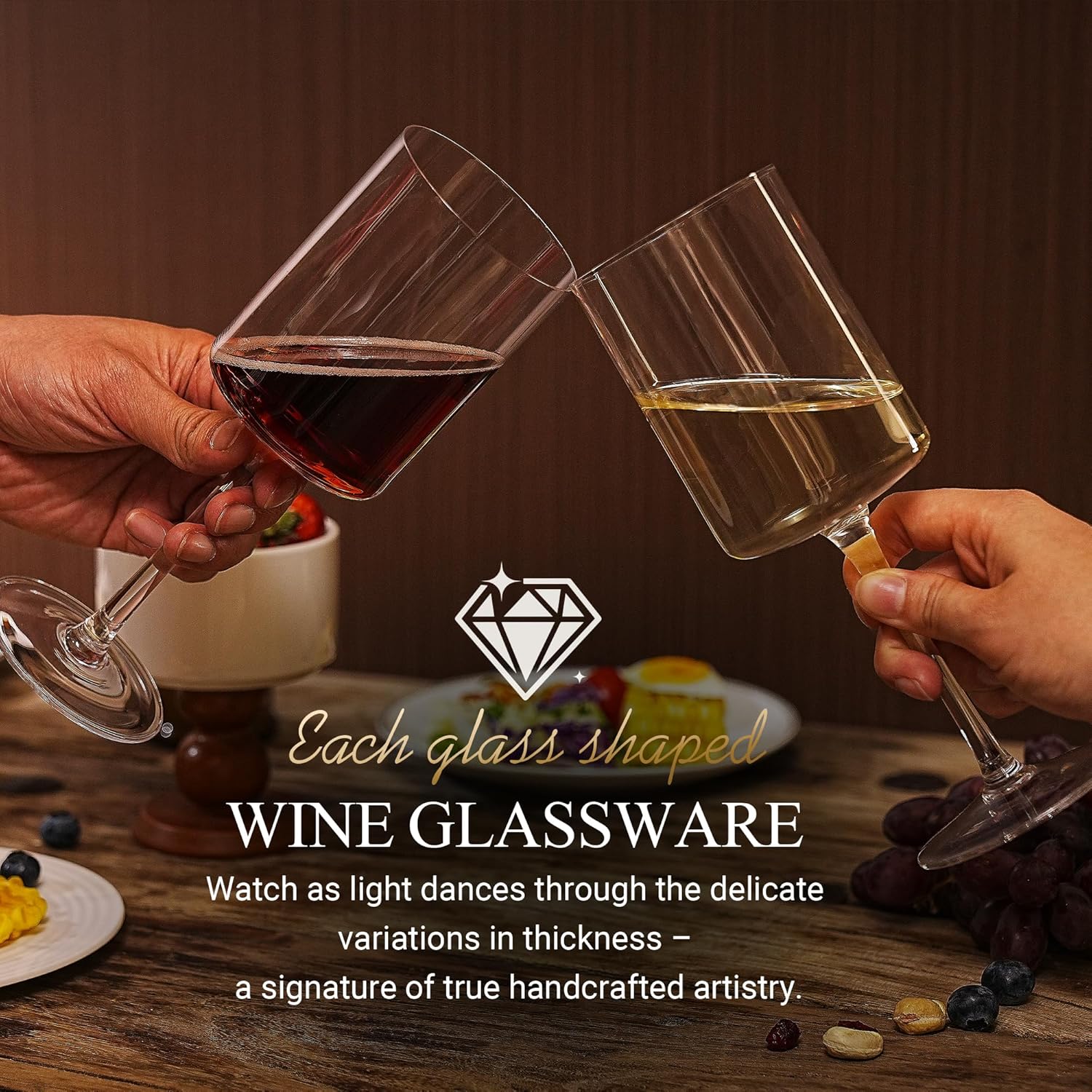 MICHLEY Square Crystal Wine Glasses Set of 4-15.5 oz large Long Stem Glassware Red/White Glasses Drinkware Perfect Gifts for Women, Wedding,Birthday Decorations