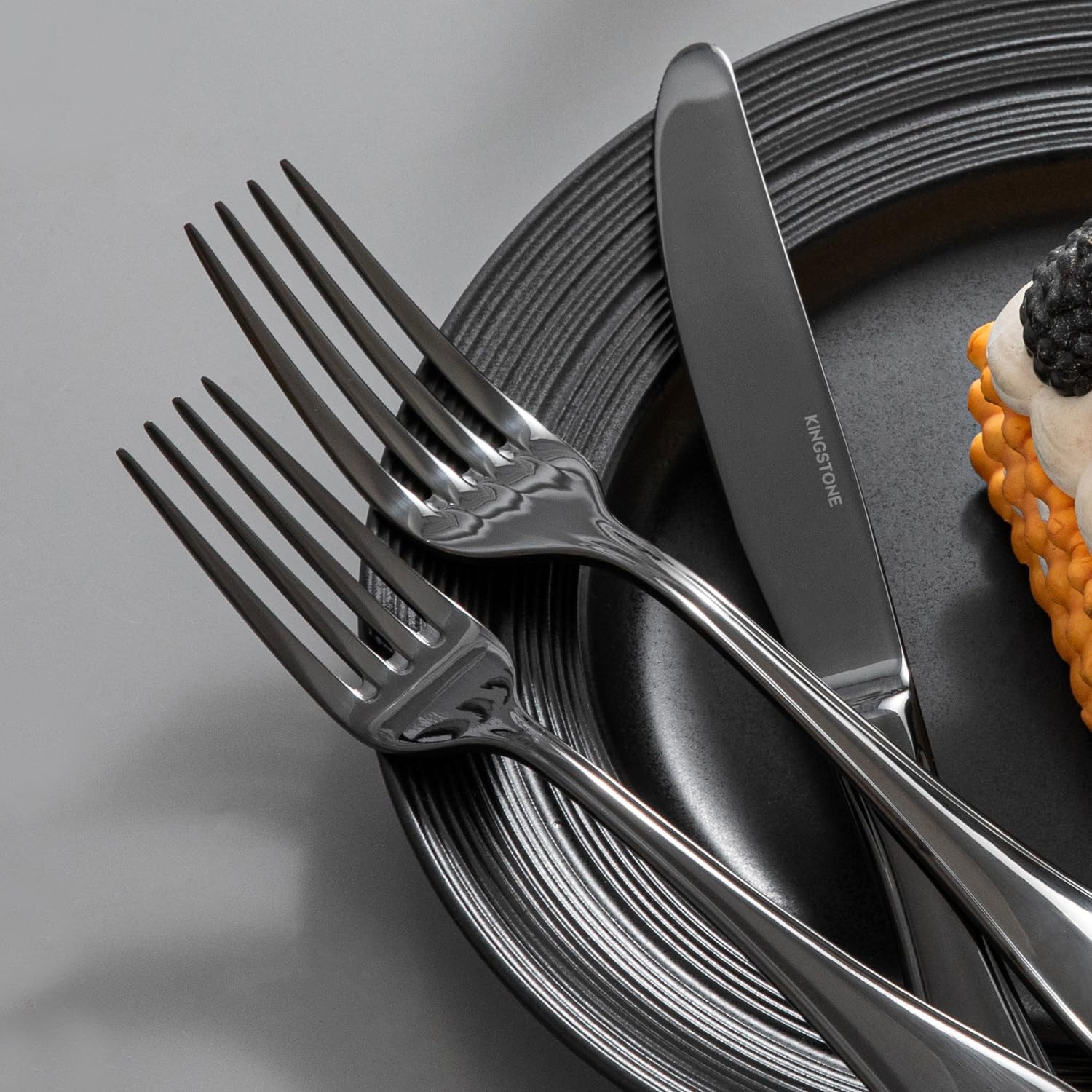 KINGSTONE 60 Piece Teardrop Silverware Set for 12, 18/10 Stainless Steel Flatware Set, Modern Design Cutlery Set for Home/Hotel/Wedding,Mirror Polished and Dishwasher Safe, Black