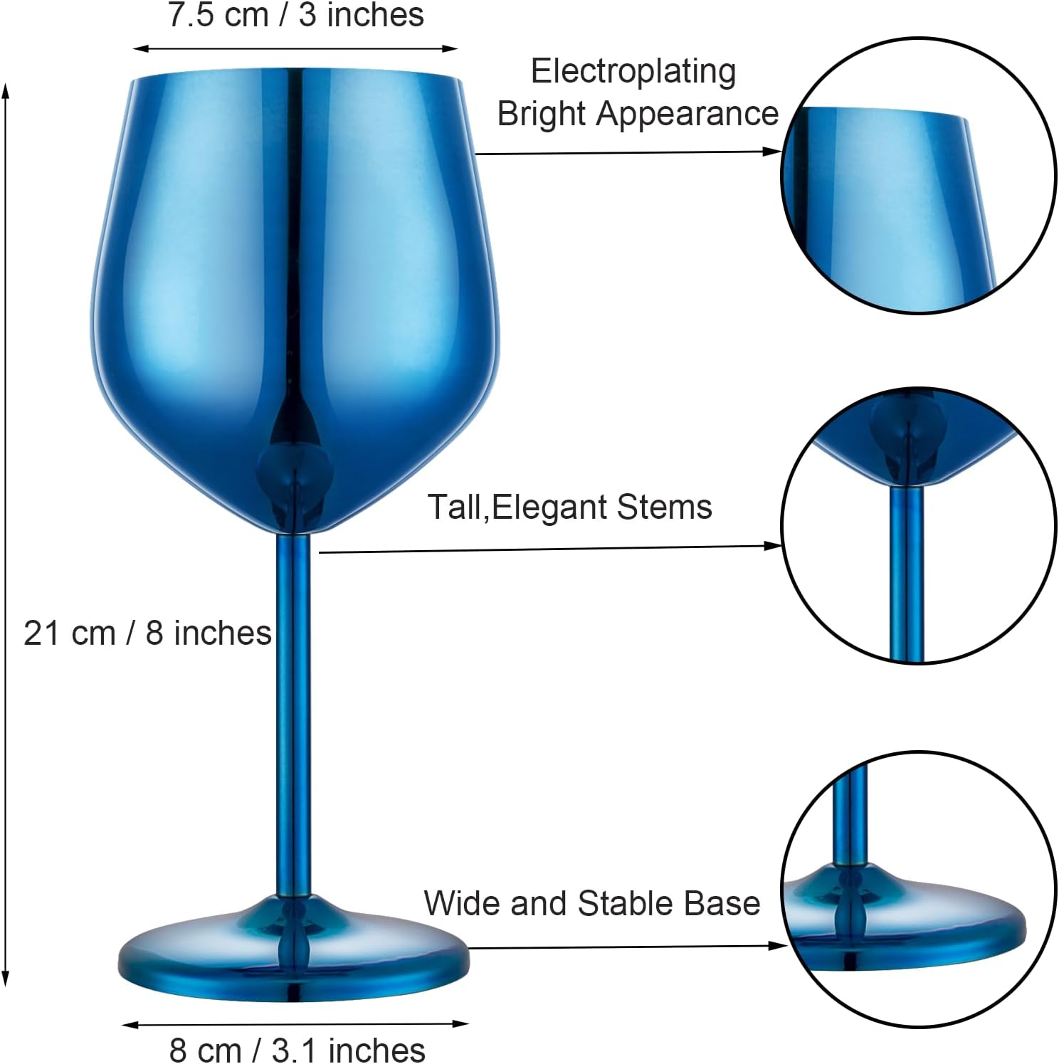 - ăLuxurious & RefinedăHand-polished to perfection, these stainless steel wine glasses feature premium electroplated coloring and a striking metallic finish. With a generous 18-oz capacity and a weighted flat base for superior stability, the sleek stem elevates both elegance and functionalityâeffortlessly aerate your wine with a graceful swirl