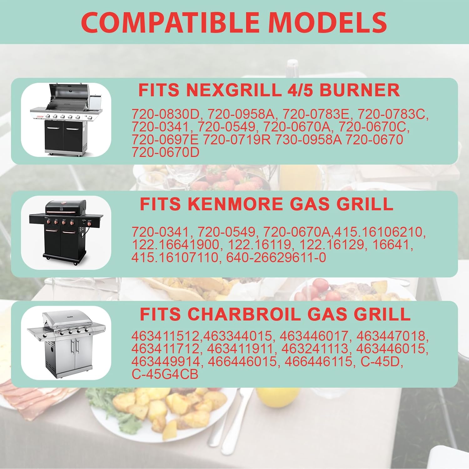 - Compatibility: Designed for nexgrill replacement parts 5 burner 720-0888 720-0888N 720-0888S,Fits for Charbroil 4 Burner 463241113 463449914 720-0783W 720-0830H 720-0830X 720-0888S etc.,Grill replacement parts fits for nexgrill gas grill 720-0958A 720-0670A 730-0958A 720-0341 720-0670 720-0549 720-0783C 720-0670C 720-0830D 720-0670D 720-0783E 720-0697E 720-0719R;And also fits for Expert 4 Burner Propane Gas Grill 720-0789C 720-0789H,Fits Members Mark Gas Grill: 720-0830F