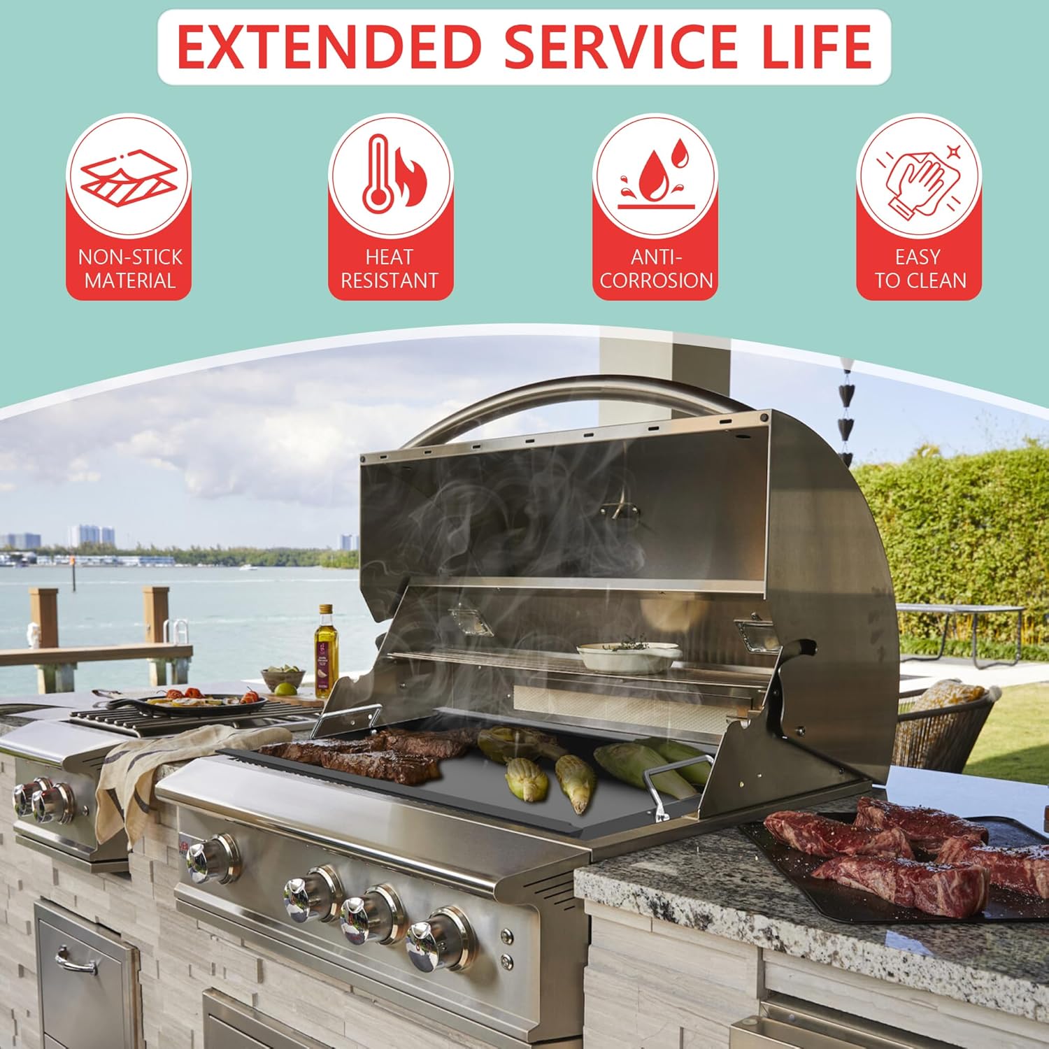 - Versatility: Experience versatile outdoor cooking and enjoy the benefits of a true flat griddle on your outdoor gas grill. A culinary powerhouse that revolutionizes your cooking experience both indoors and outdoors. perfect for sizzling crispy bacon, grilling juicy burgers and savory hot dogs, or even steaming and stir-frying multiple dishes simultaneously—no more waiting around for your meals!