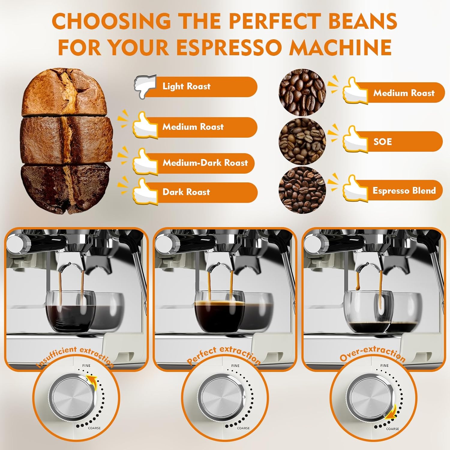- Built-in Grinder With Cleaning Kits: Integrated conical burr grinder with 19 grinding sizes to fine tune your grind size for the desired extraction and flavour outcome,while included self-cleaning kit automatically clears residual grounds—no more daily disassembly or clogged grinders