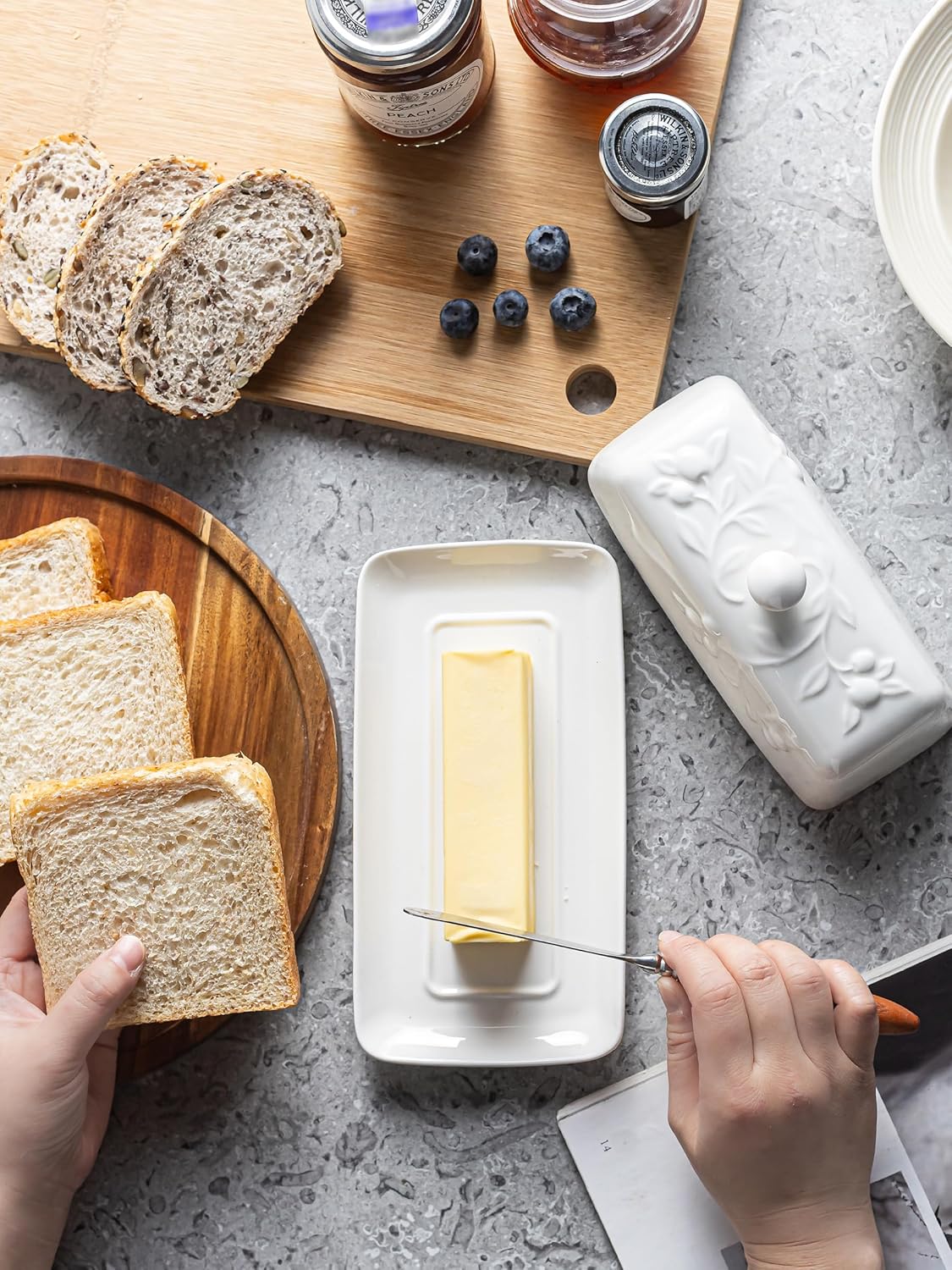 - Premium Porcelain: Made from high-quality porcelain, this butter holder offers long-lasting durability. Its classic white glaze resists scratches and fading, making it a timeless addition to any kitchen or dining table.