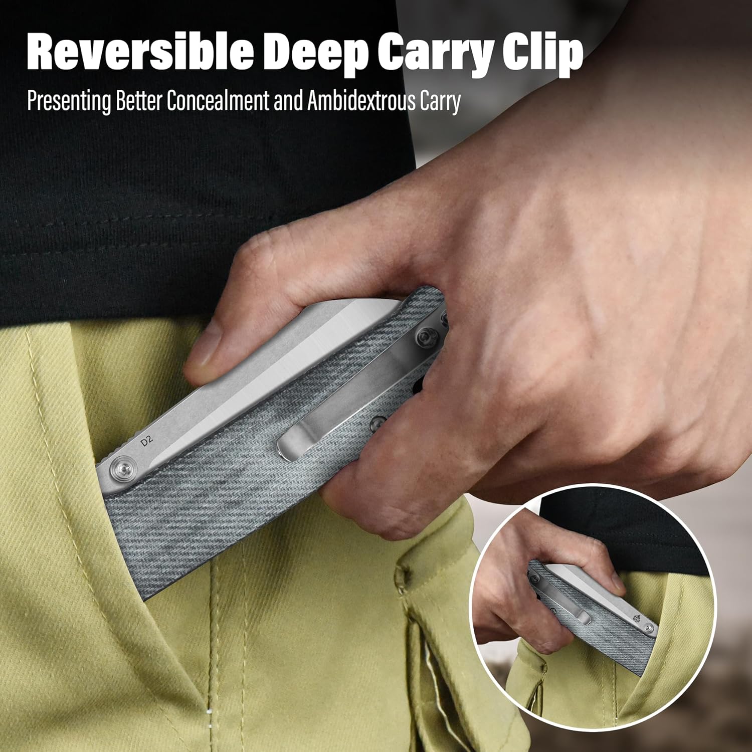 - Easy to Carry: This edc knife weighs only 3.28 oz and has closed length of 4 inches. It comes with reversible ss deep carry clip, making it easy to attach to your gear or clothing. Whether you are left-handed or right-handed, it is easy to use.