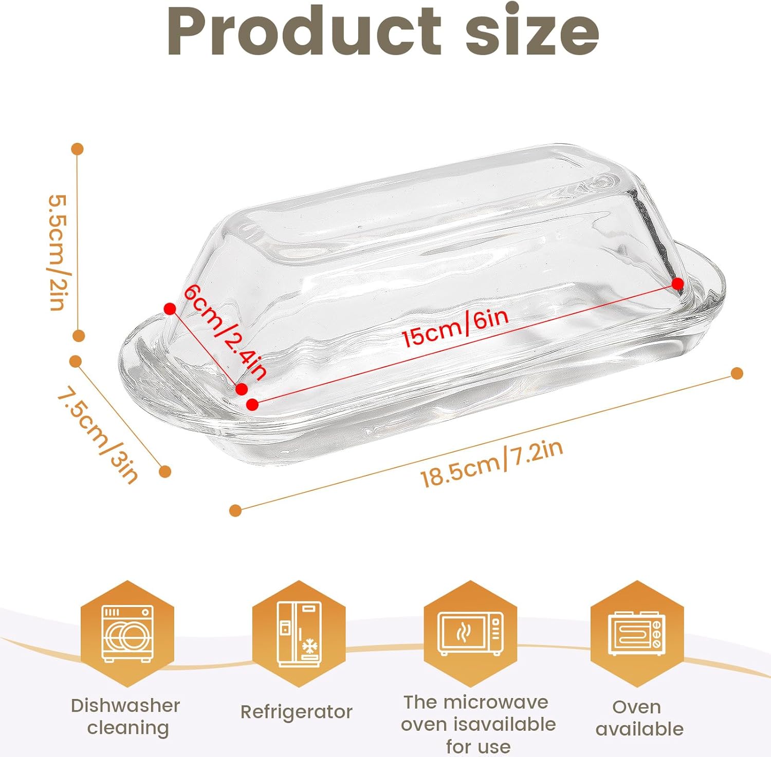 - 【Premium Material】: The glass butter dish is made of high-quality heat-resistant glass, does not contain BPA, and can be used for a long time at a high temperature of 1400℉, or it can be placed in the refrigerator for a long time at -22℉, so that you and your family can use it with peace of mind every time.