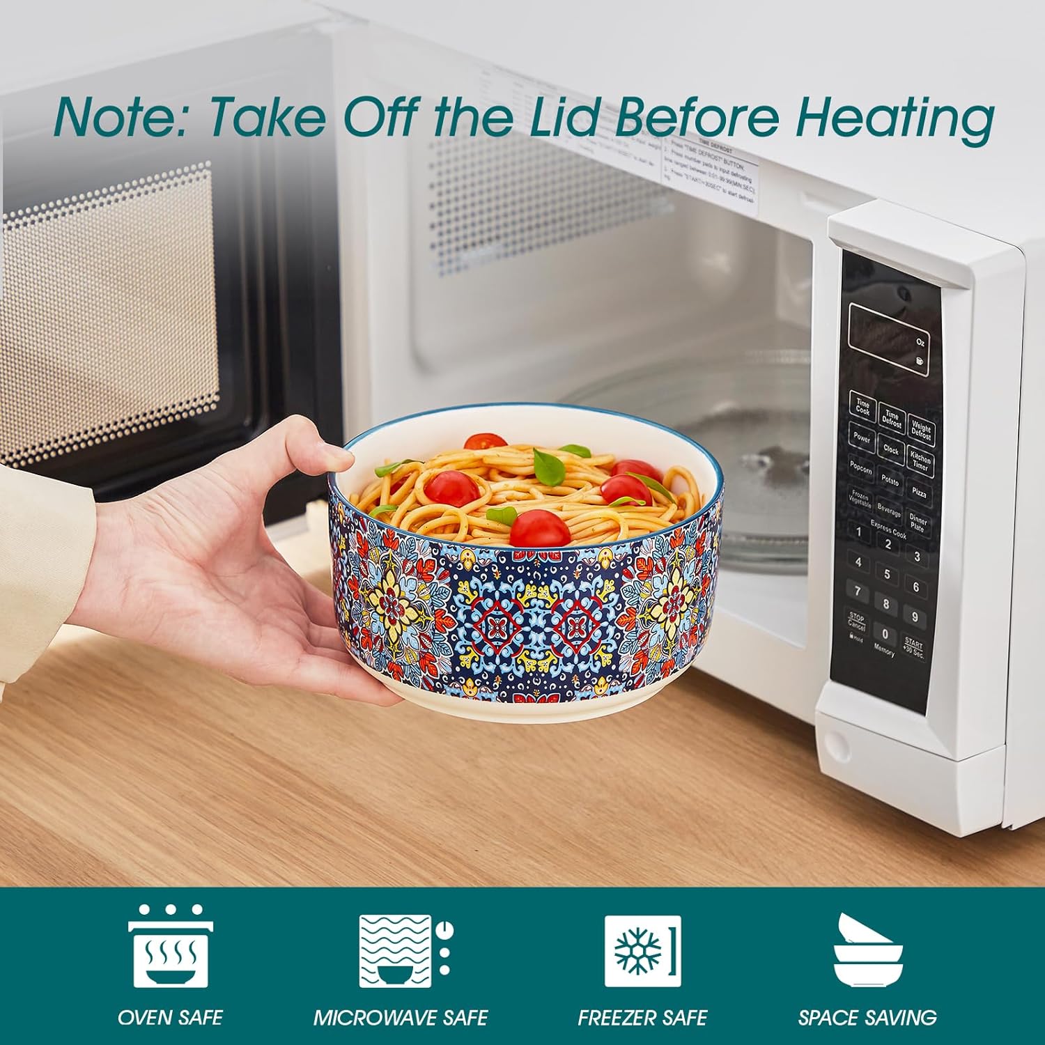 vancasso 36 oz Ceramic Bowls with Lids Set of 4, 6 Inch Food Storage Containers & Prep Bowls for Leftovers, Soup, Cereal, Meal Prep, Office Lunch, Microwave & Dishwasher Safe, Series SIMI