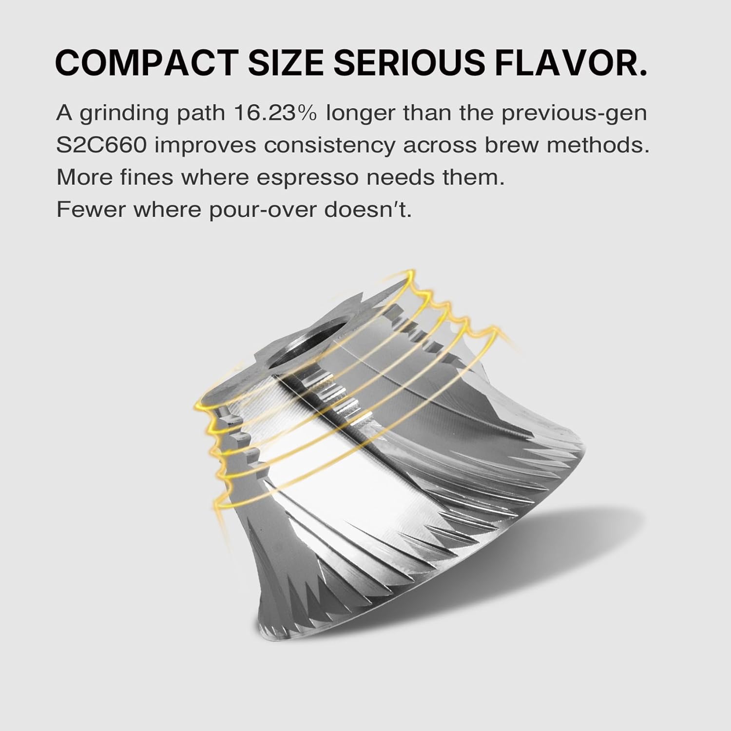 - [ What is C5 ESP Pro? Special Design For Espresso ]Equipped with patented S2C-420-III stainless steel burrs with higher precision and efficiency. C5 ESP Pro hand coffee grinder provides more precise grinding adjustment, minor adjustment of 0.015mm per click allows you to easily achieve the perfect coarseness for your preferred fine to coarse. From French press to espresso coffee, TIMEMORE has you covered