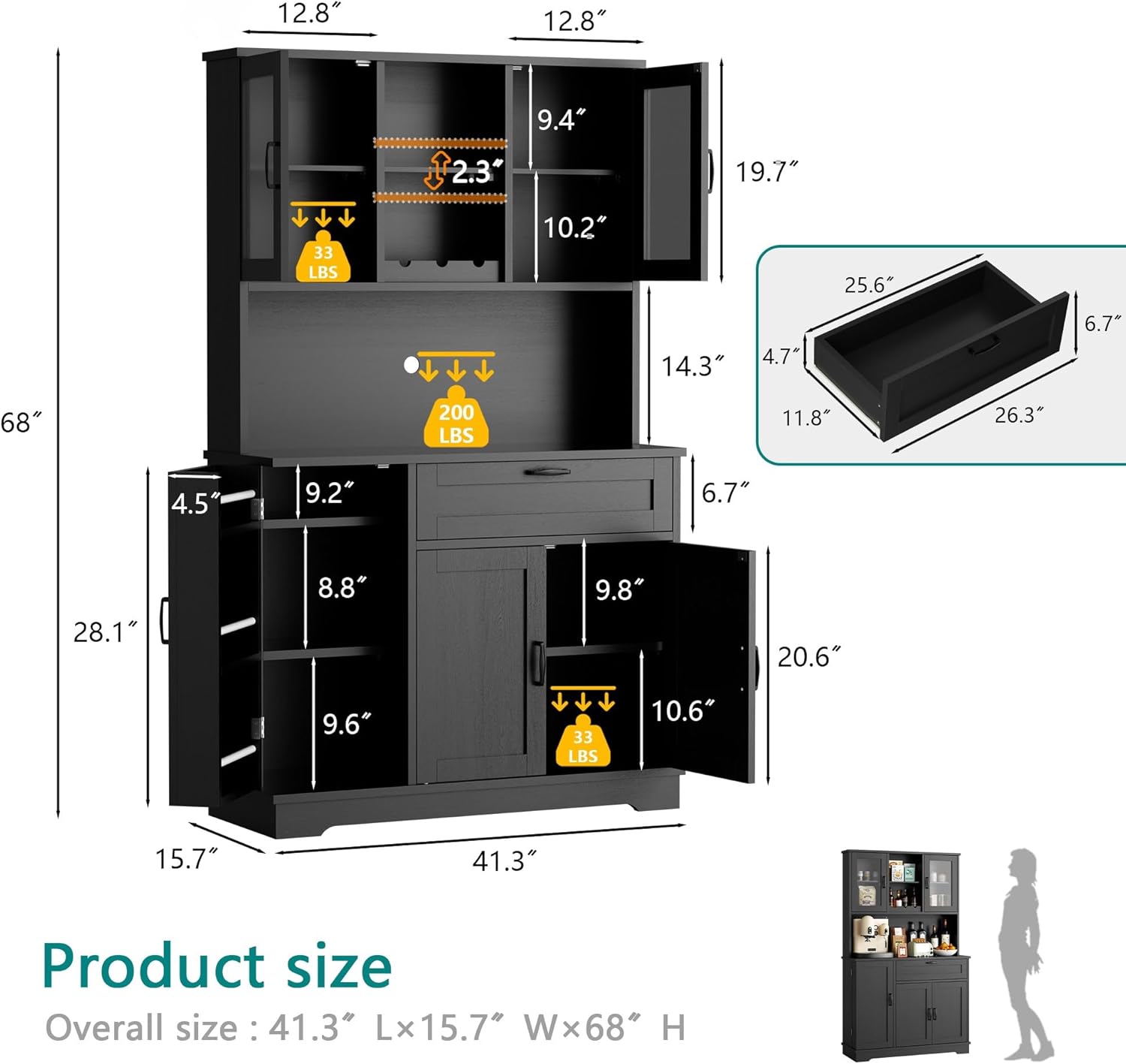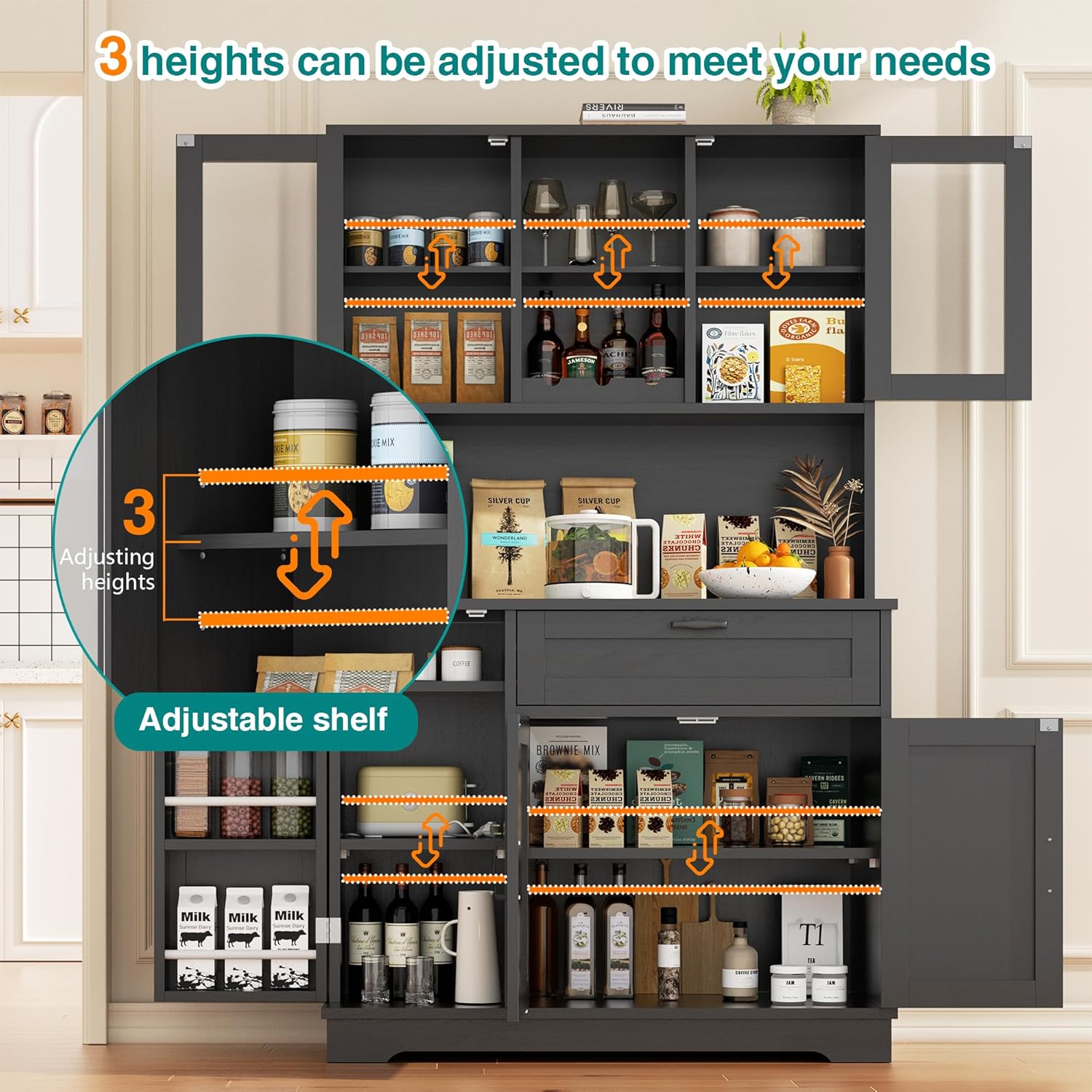 - Multi Scene: Except for being used as a food pantry cabinet in the kitchen, this hutch cabinet also works well as coffee bar, buffet cabinet in the dining room or as bar cabinet in the living room. It's the perfect pick that any family will love to fill their home.